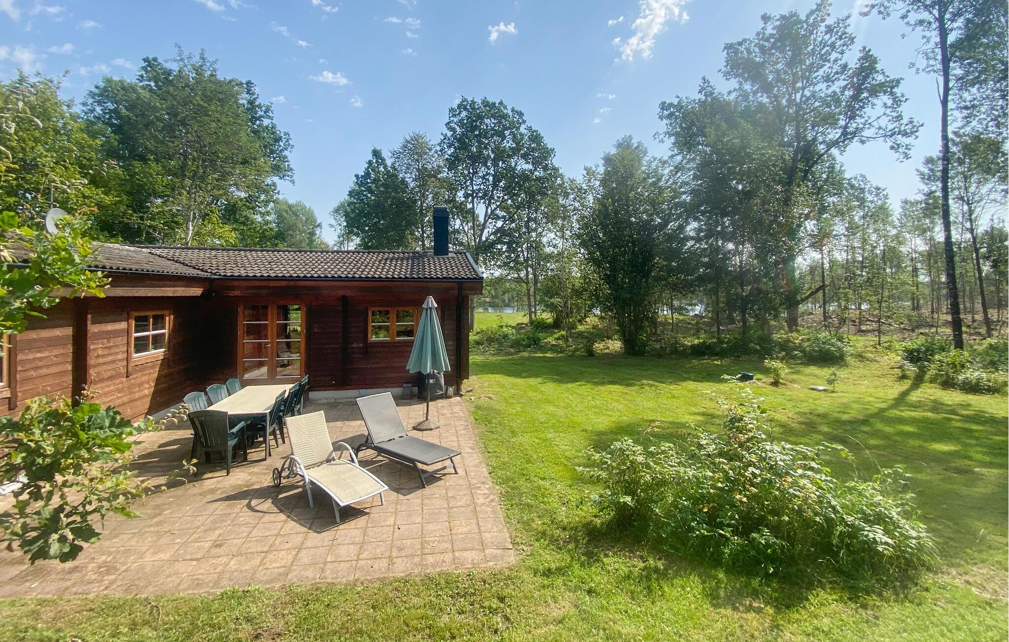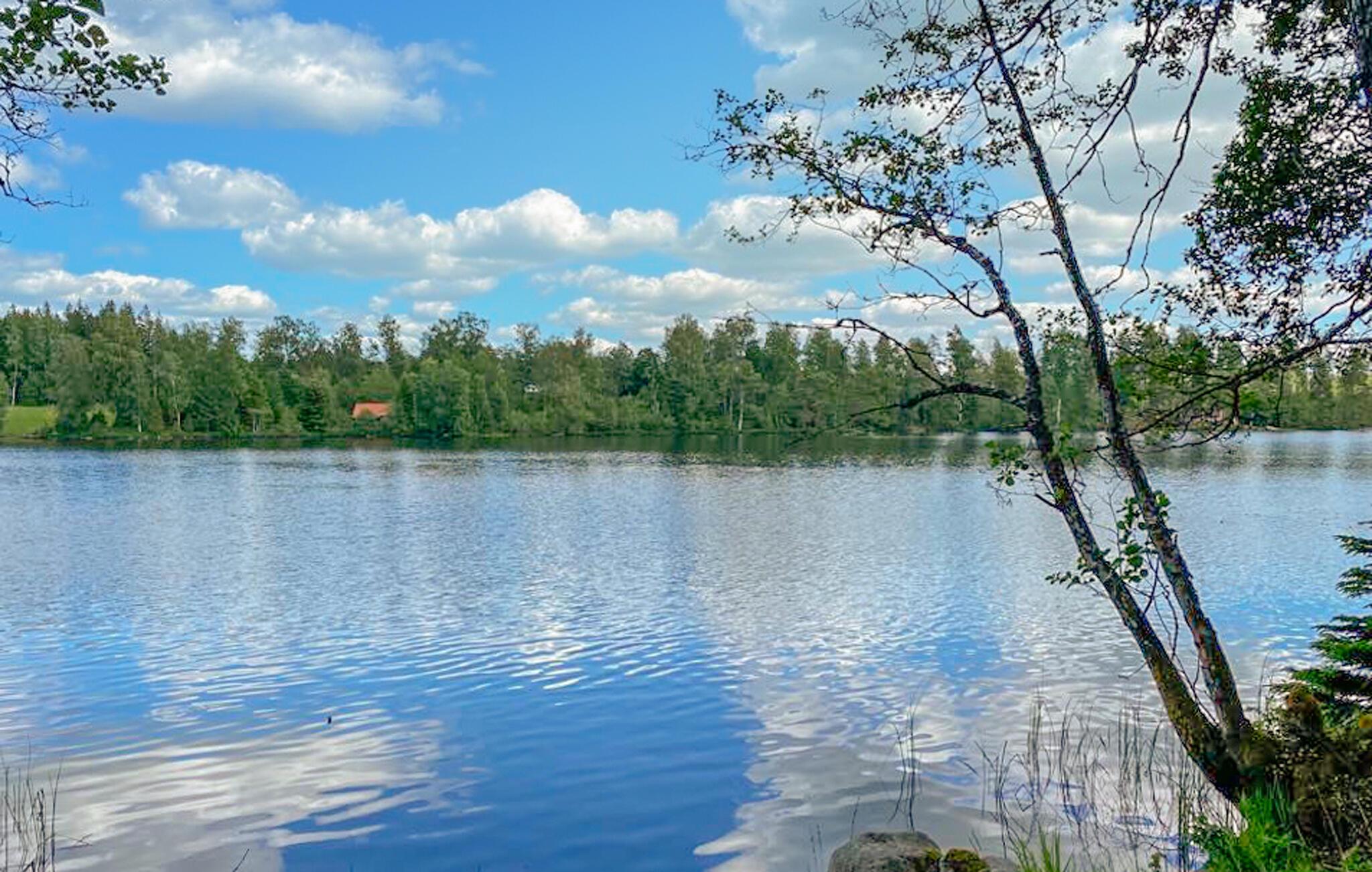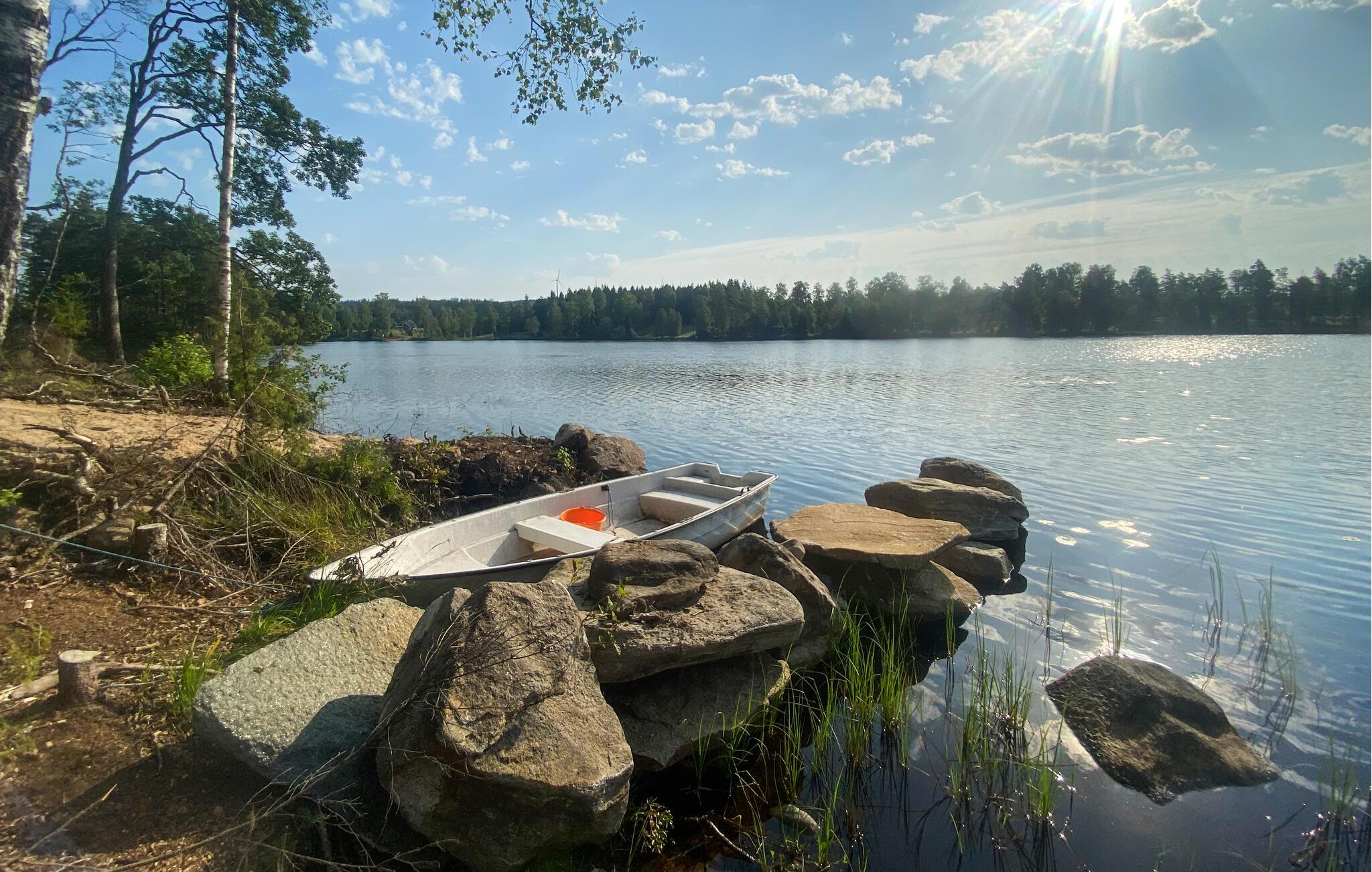 De to terrasser - hvoraf den ene har udsigt over søen - er ideelle steder til afslappende dage udendørs og stemningsfulde grillaftener. Som gæst har I adgang til en båd på den nærliggende sø - prøv fiskelykken.