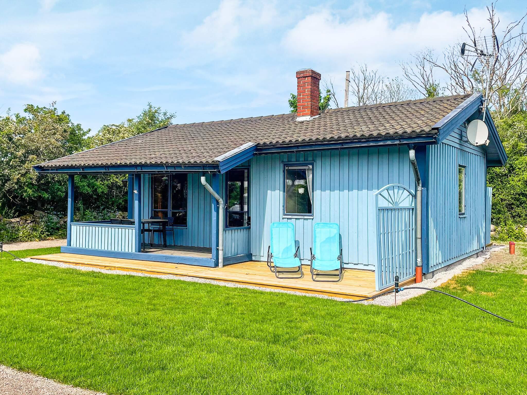Huset har en öppen planlösning med ett kombinerat kök med matplats och vardagsrum. Det finns två sovrum, ett med en dubbelsäng och ett med en våningssäng.