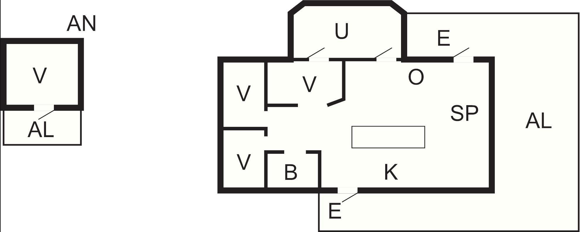 Ni har ett härligt inglasat uterum med infravärme och en altan där ni kan umgås och njuta av semestern. Huset har ett stort sällskapsrum med en köksdel, matplats och en vardagsrumsdel. Stora huset har tre sovrum. Den ena med en två bäddar som kan sättas ihop till en dubbelsäng, den andra med en enkelsäng och det tredje med en våningssäng. Ni har även den trevliga gäststugan med en våningssäng där ni sover i en överslaf samt två underslafar.