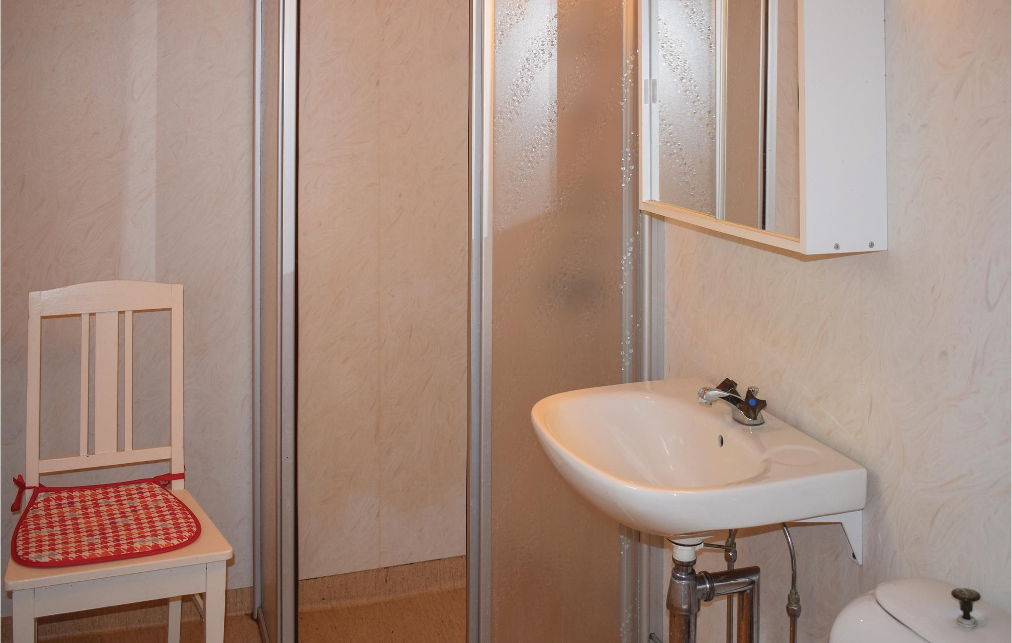 Badeværelse (nr. 1) - WC. Varmt og koldt vand. Håndbruser, badekar og bruser