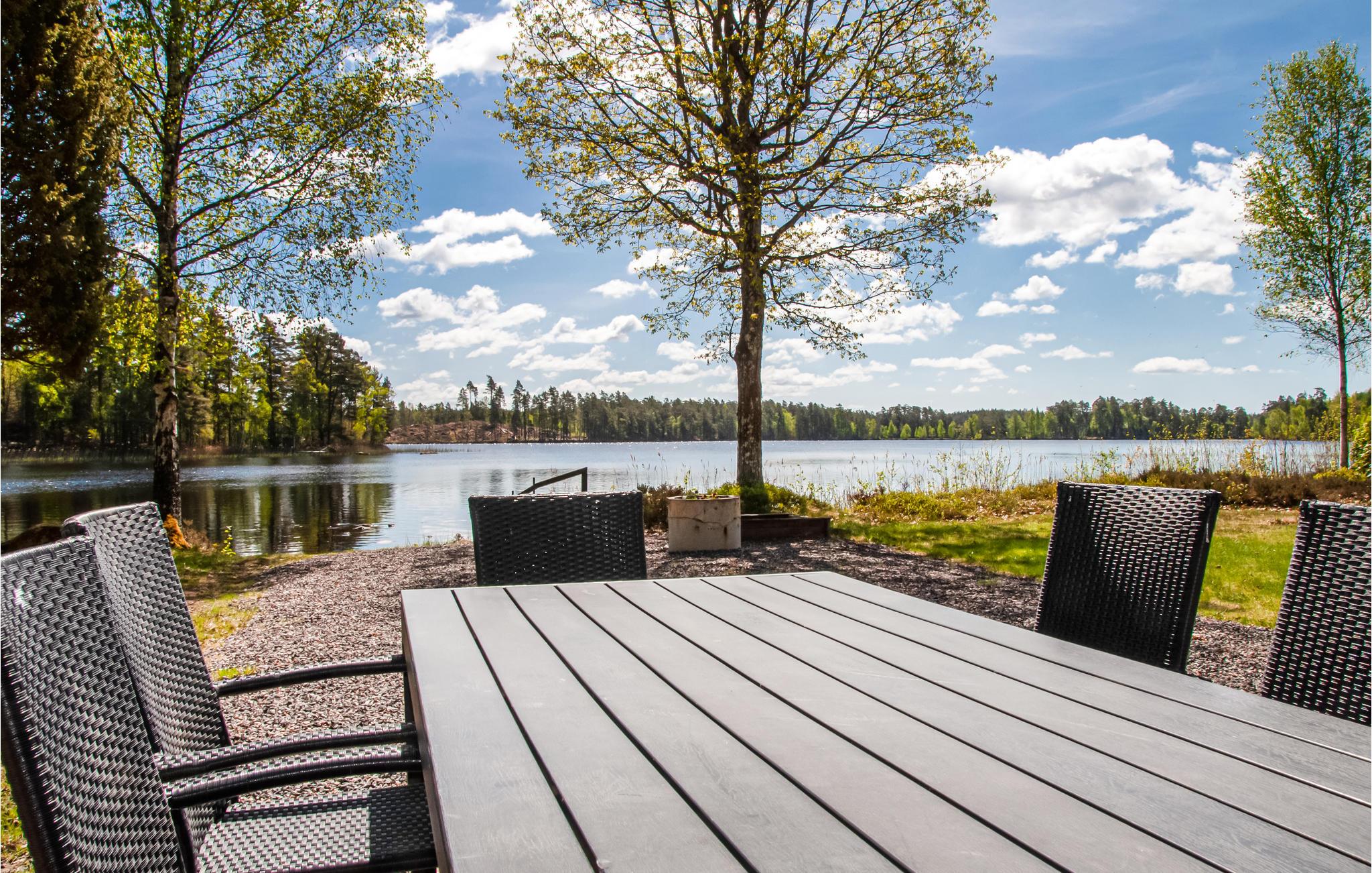 I kan se frem til en yderst idyllisk beliggenhed med en vidunderlig udsigt over søen. Der er mange smukke destinationer i området: Der er flere dejige bade- og fiskesøer i alle retninger samt utallige vandre- og cykelstier til den eventyrlystne. Med lidt held kan I endda spotte elge. I er midt i den smålandske idyl, men stadig kun 10 km fra nærmeste by med indkøbsmuligheder. Besøg også IKEA-museet i Älmhult.