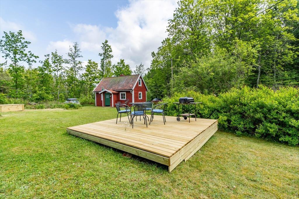 Det renoverede feriehus fra 2018 ligger ca. 6 km nord for Rödeby i regionen Blekinge i rolige og naturnære omgivelser. Søen Yasjön ligger ca. 2 km væk. Ejendommen består af et hovedhus og et gæstehus og er beliggende på en ca. 2.300 m² stor grund med stor have. Den smukke kystby Karlskrona ligger kun ca. 20 km derfra.