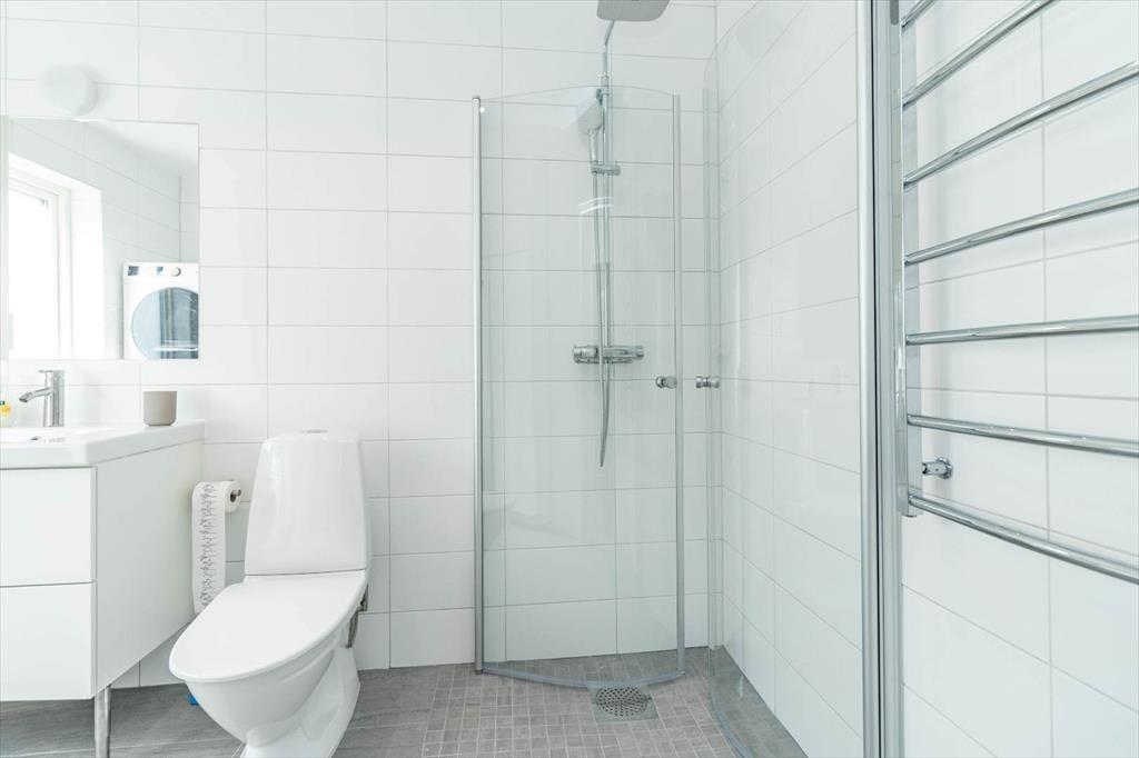 Huset har ca. 65 m² boligareal og giver plads til 6 personer. I entréen bydes du velkommen af en lille forgang med garderobe. Lige ved siden af ligger badeværelset med toilet, bruser, vaskemaskine og tørretumbler. Husets hjerte er det åbne opholds-, spise- og køkkenområde: Køkkenet er moderne udstyret med induktionskogeplade, opvaskemaskine, køle-fryseskab og kaffemaskine. Ved spisebordet kan I nyde jeres måltider, mens opholdsstuen med udtrækssofa og Smart-TV indbyder til afslapning. To soveværelser støder til – det ene med dobbeltseng, det andet med køjeseng. Store vinduer og to terrassedøre lukker masser af lys ind og giver direkte adgang til terrassen med udsigt mod Østersøen. Her står loungemøbler, havemøbler og en lille Weber-grill til rådighed. Gulvvarme sikrer behagelig varme i hele huset, og takket være wifi er du altid online.