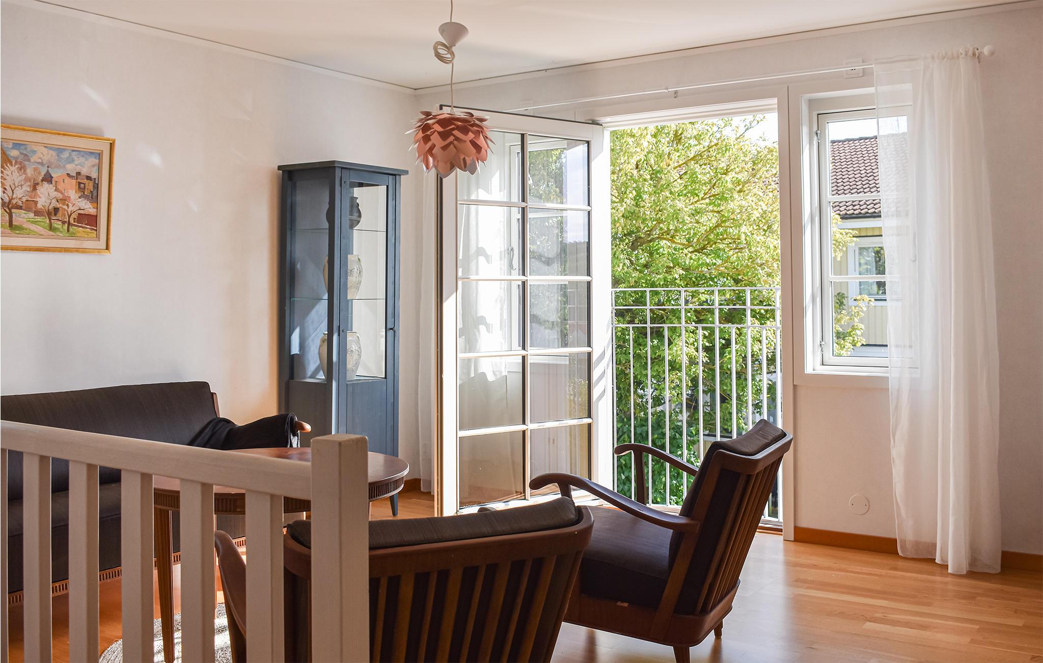 I bor i et roligt boligområde nær centrum af den rolige by Karlskrona. Den rummelige lejlighed er praktisk og charmerende indrettet, og det store udvalg af træ skaber en hyggelig atmosfære. Herfra kan I få et glimt af havet, som kun ligger få skridt væk. I godt vejr kan I spise på jeres egen store terrasse.