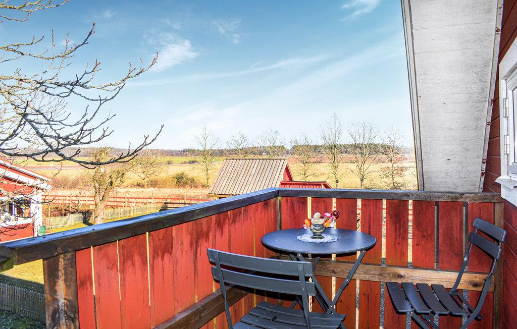 Nyd udsigten fra jeres altan over de omkringliggende marker og skove. Tag jer tid til en morgenmad under åben himmel eller et glas vin om aftenen. På gårdspladsen står der liggestole og en grill klar – perfekt til at nyde solrige timer. De landlige omgivelser med åbne enge og spredte gårde giver en følelse af frihed og ro.