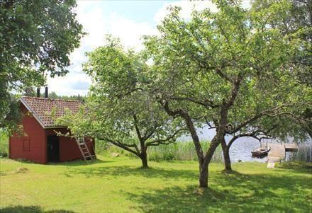 Udendørs venter en veranda med havemøbler, en grill, en stor leje- og liggeplæne – og selvfølgelig din egen robåd samt kano. Ønskes det, kan en elmotor stilles til rådighed efter aftale. Helt nede ved vandet ligger desuden et sauna-hus med brændefyr – for ægte svenske øjeblikke.