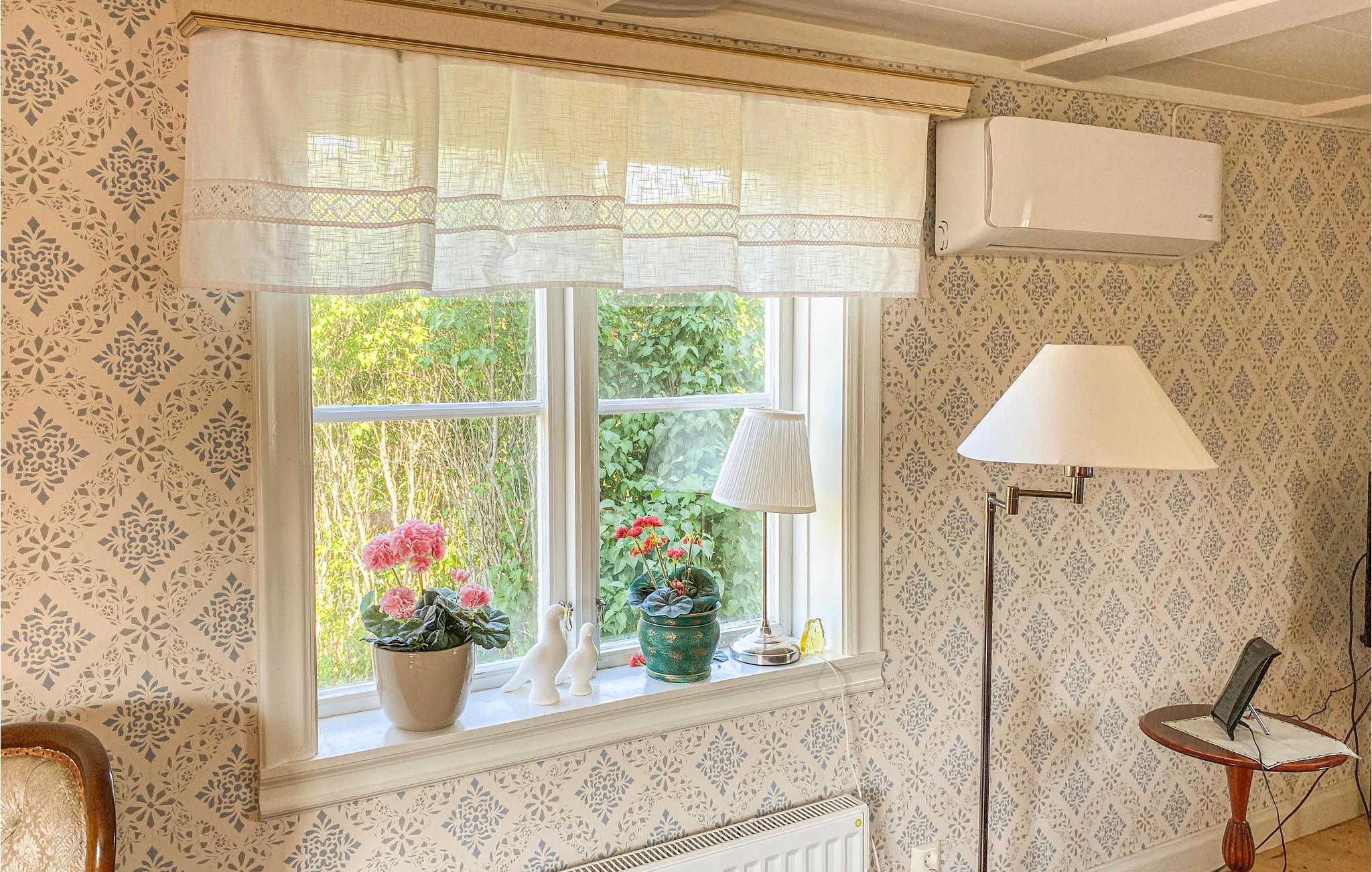 Dette skønne dobbelthus ligger i de skønneste landlige omgivelser. Boligen er behageligt indrettet, så her har I mulighed for at slappe af og nyde tiden sammen. Hyg jer sammen i stuen ved pejsen eller lav lækre måltider i det rustikke køkken. Nyd jeres måltider i haven med en fantastisk udsigt til den nærliggende sø. Børnene kan lege og boltre sig på den store græsplæne.