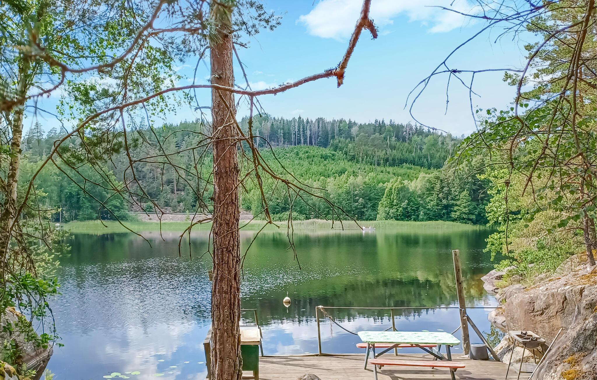 Lokker det med en aktiv ferie i naturen, hvor I ikke nødvendigvis behøver bo i ren luksus? Så er dette charmerende træhus lige noget for jer! Det ligger i absolut idylliske omgivelser tæt ved en sø, og indretningen fremstår varm og indbydende med basal komfort, så I kan hvile stængerne efter en aktiv dag i naturen. Tag jer god tid til madlavningen, inden I om aftenen kan runde dagen af med brætspil eller et slag kort i den behagelige sofa. Nyd jeres morgenkaffe i solens første stråler udenfor, inden I begiver jer ned for et friskt dyp i den klare sø.