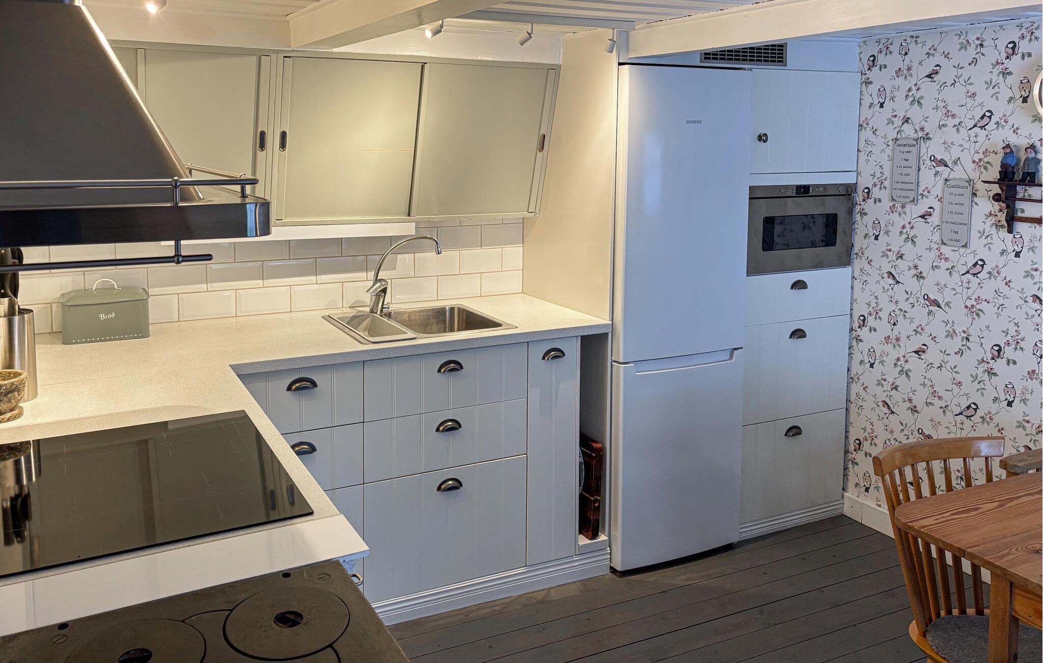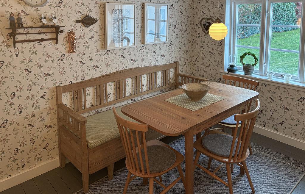 I Vitemölla, smukt beliggende foran en mur af tårnhøje grantræer, venter dette feriehus med historisk flair på jer. Her er der hyggeligt! I vil straks mærke, at huset er indrettet med kærlighed. Det perfekte sted til optimal afslapning i grønne omgivelser og for dem, der søger en særlig boligoplevelse. Brug denne bolig i smukke Österlen som et godt udgangspunkt for fiske- og vandreture. I kan planlægge jeres udflugter i spisekøkkenet, hvor små og store kokke kan fremtrylle lækkerier sammen. Hvis vejret er godt, kan I spise på en af terrasserne. Nyd hjemmebagt kage i haven og slå jer løs på græsplænen sammen med jeres børn. Sidst på aftenen kan I drikke et glas vin. I kan se havet fra ejendommen, og vandrestien Skåneleden ligger kun få skridt fra huset.
