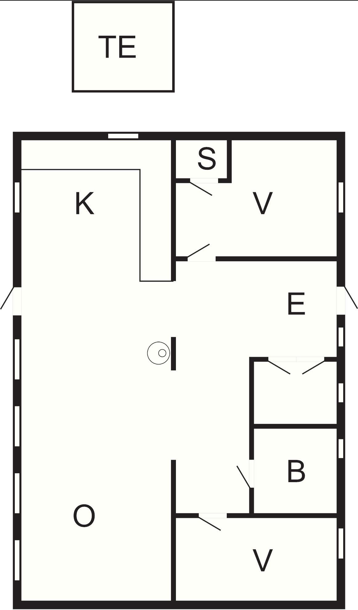 1 Opholdsstue: (1DO), brændeovn