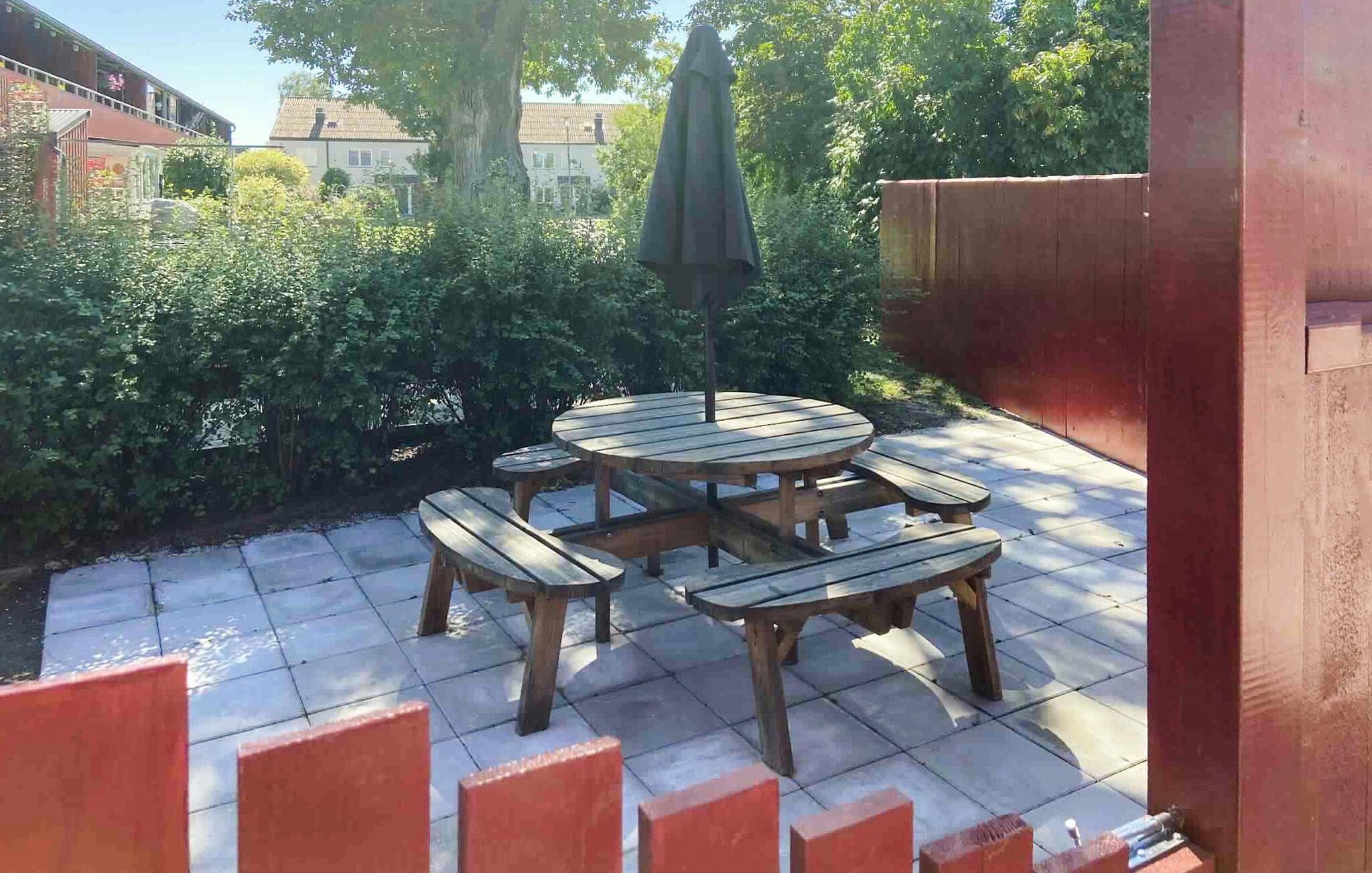 På solrige dage kan I servere morgenmad på den fælles grund og tænde op i grillen.