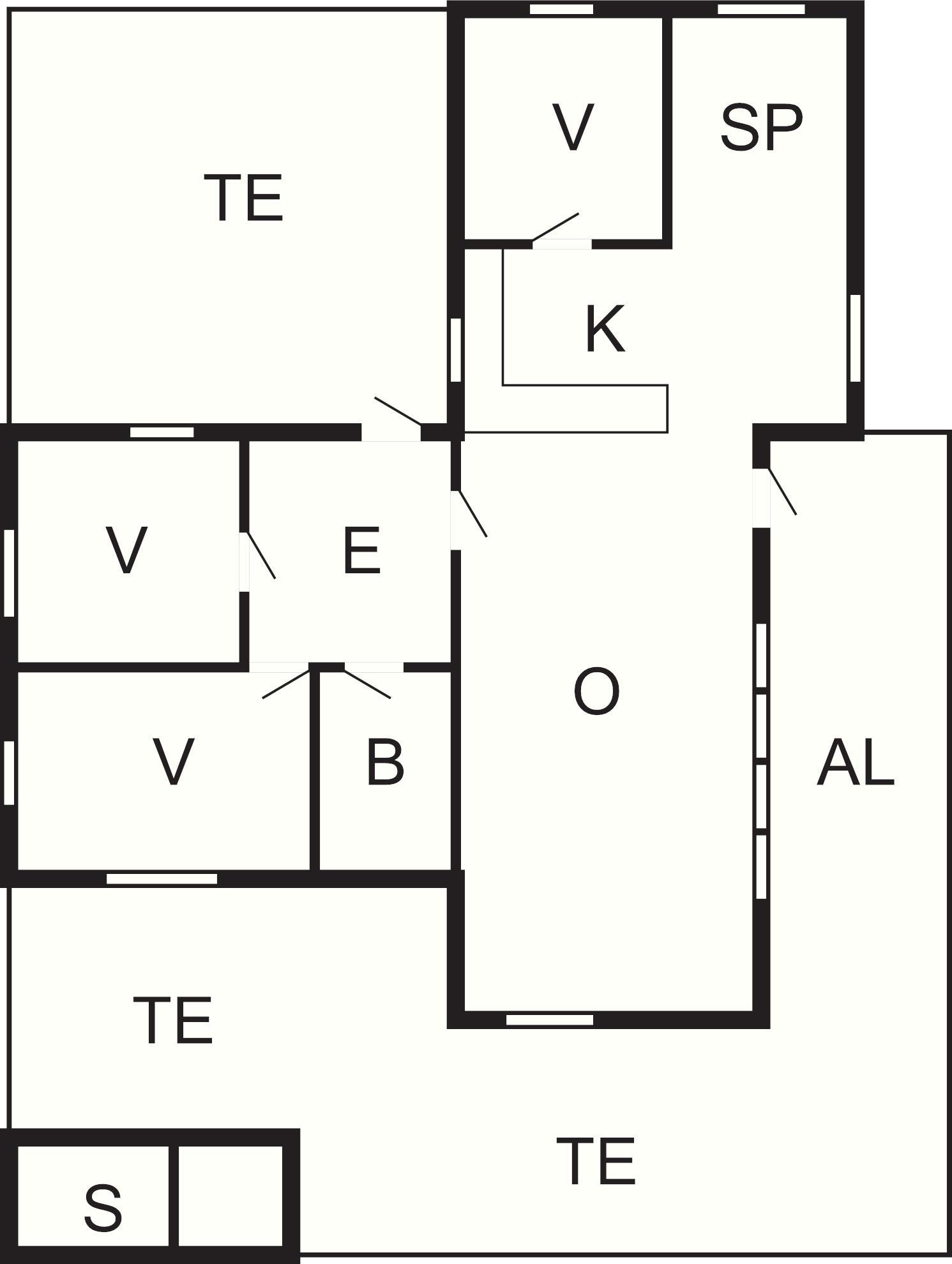 3 Soveværelser: (1DS)+(1DO)+(2K)