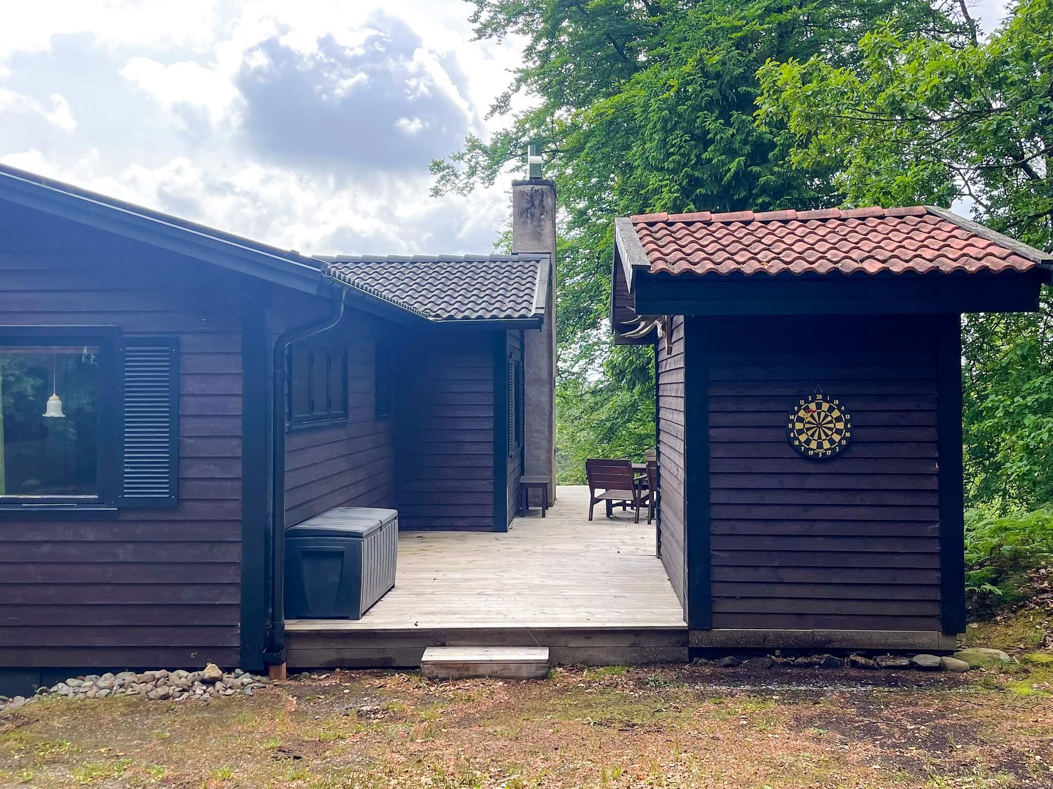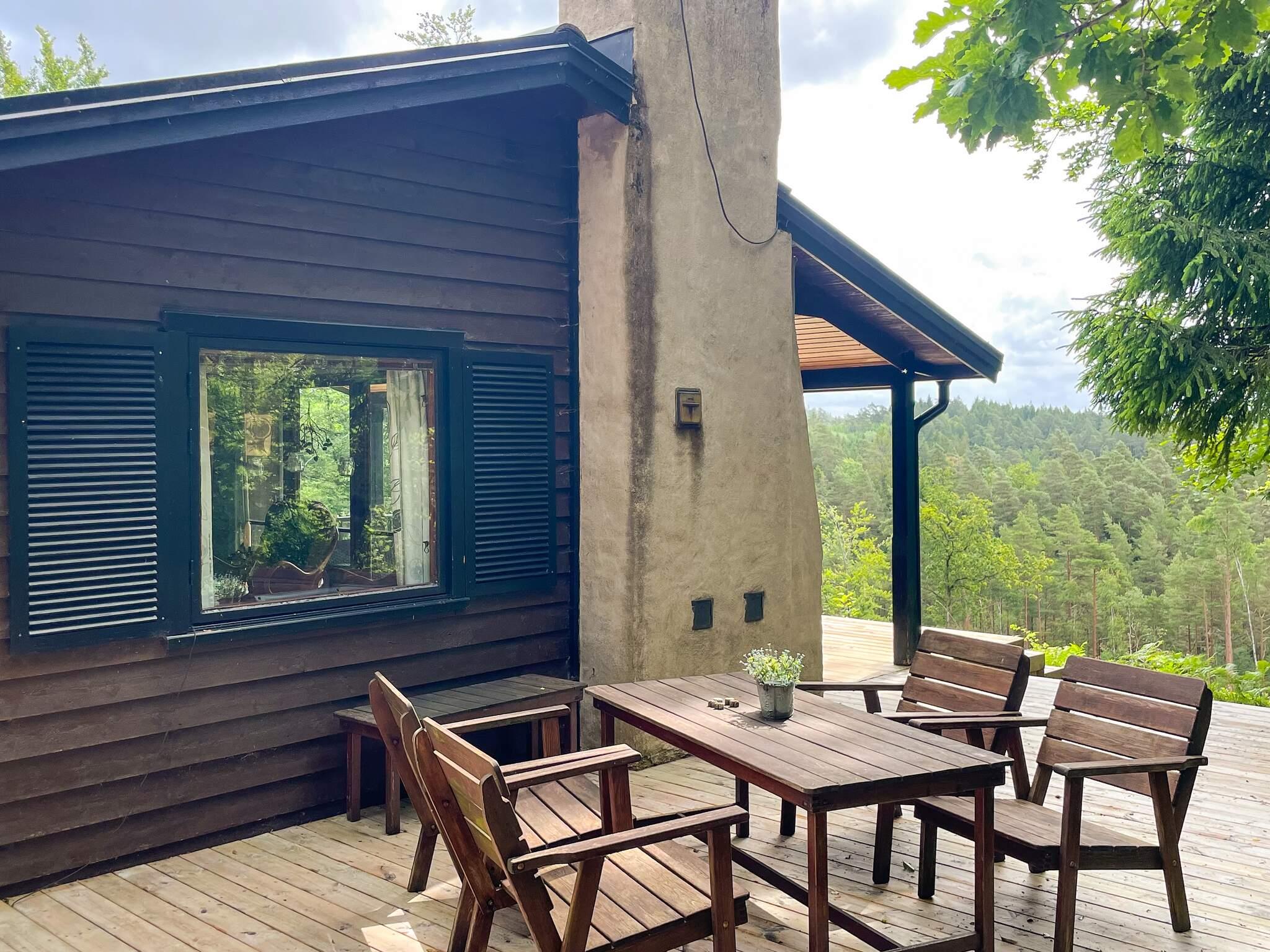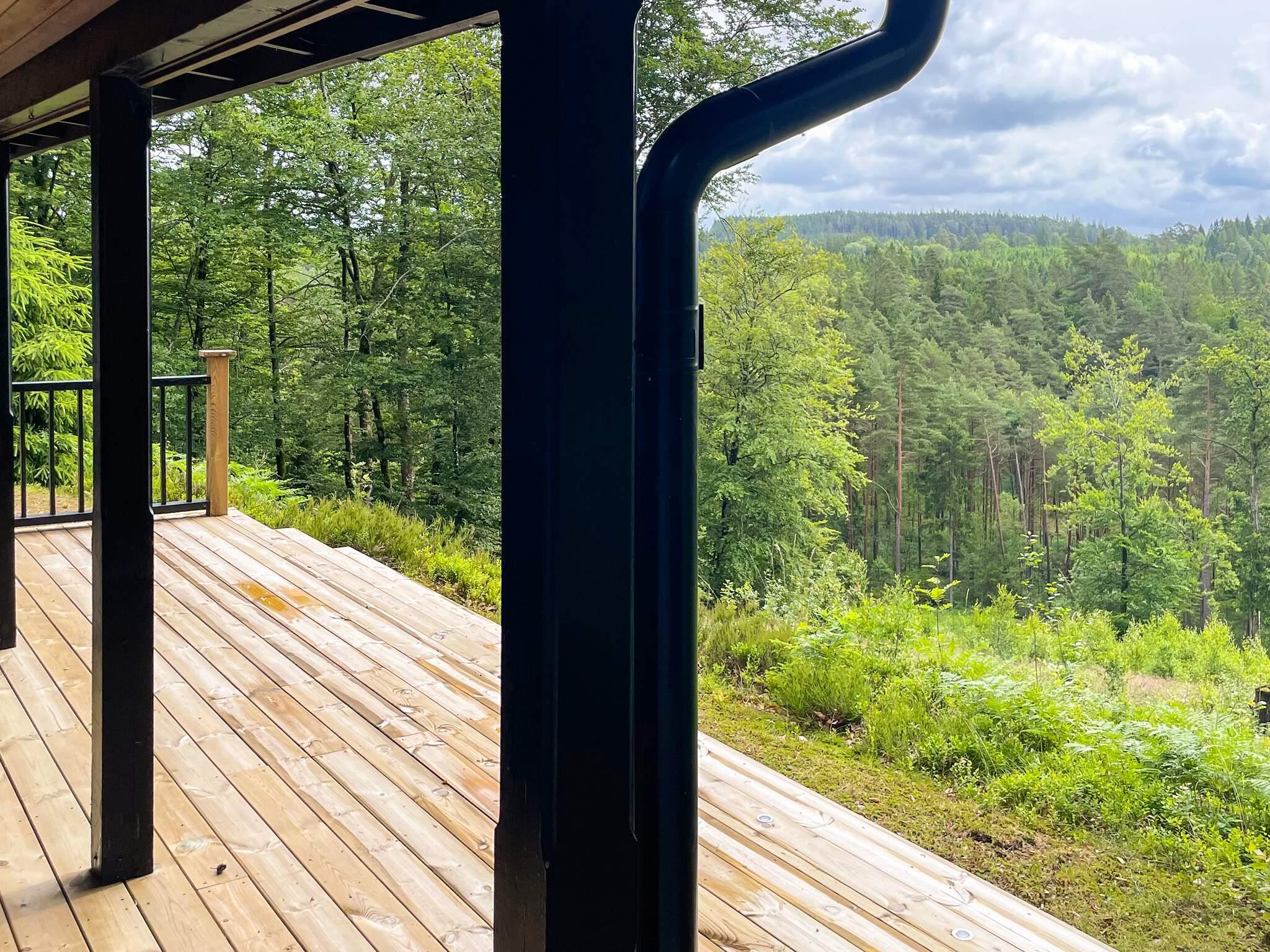 Ett mycket trivsamt fritidshus med naturen in på knutarna. Stugan ligger enskilt och insynsskyddat. Från altanen under tak njuter ni av stillheten, närheten och utsikten over orörd vacker bokskog. I området finns flera sjöar, naturreservat och fina svampskogar. Ett perfekt boende för naturälskaren. Ett väldigt bra utgångsläge för utflykter i hela området. Stugan ligger högt och inbäddat i omgivande bokskog. Från entrén har ni först ett badrum med dusch och tvättmaskin. Här finns också ett sovrum med en dubbelsäng och ett sovrum med en bäddsoffa för två personer. Vardagsrummet är smakfullt möblerat och har en värmande braskamin och modern TV med chromecast. Köket är välutrustat, vackert och har en rymlig matplats. Här finns också ett sovrum med en våningssäng. Från det ljusa vardagsrummet kommer ni ut till en fantastiskt fin överbyggd altan. Utsikten är magnifik. Här njuter ni av utsikten över bokskogens trädtoppar och kanske något gott att dricka en härlig kväll. Alldeles intill huset finns en bekväm bastu med liten loungedel. Runt stugan finns flera uteplatser med bekväma utemöbler och grill.