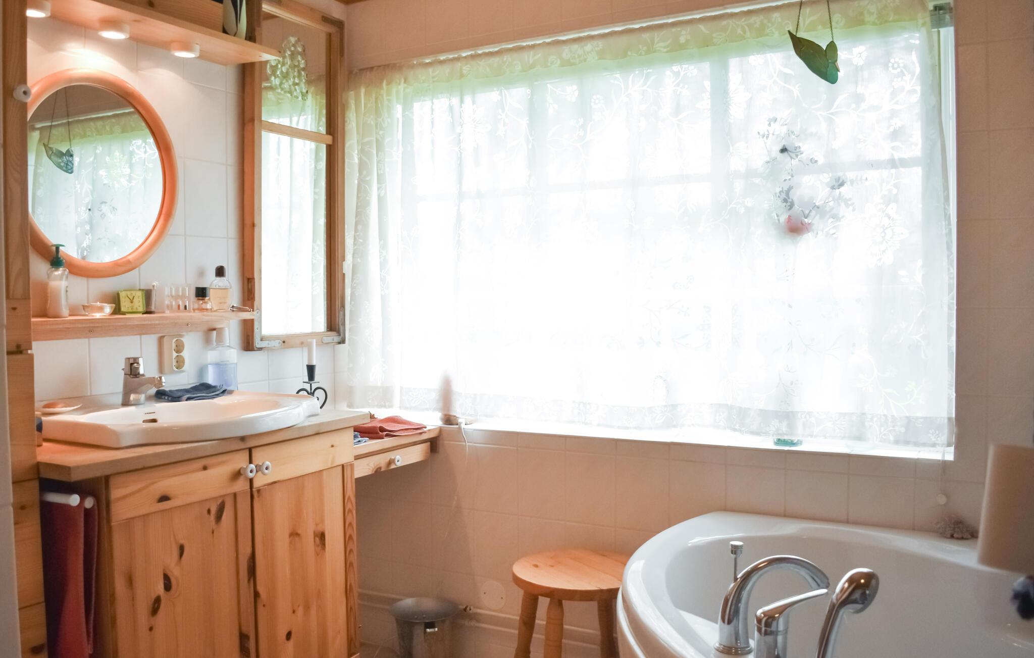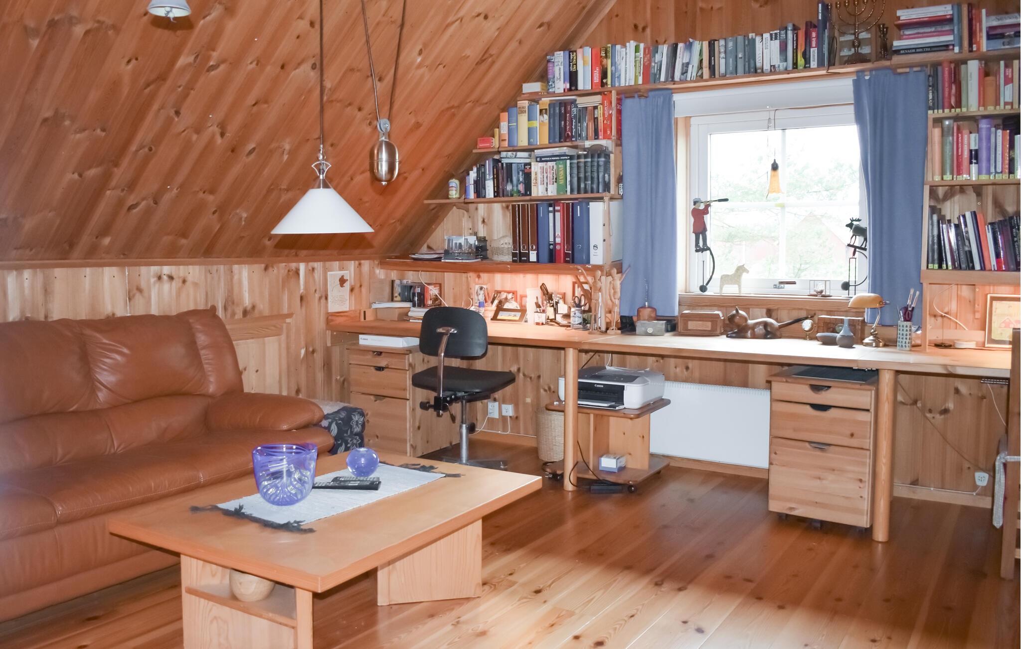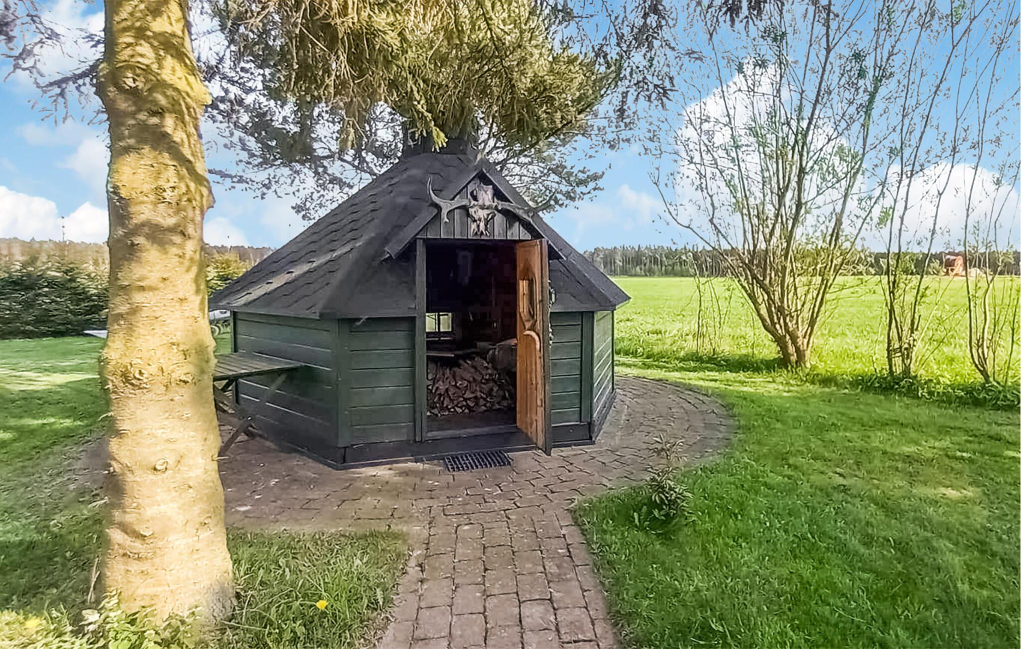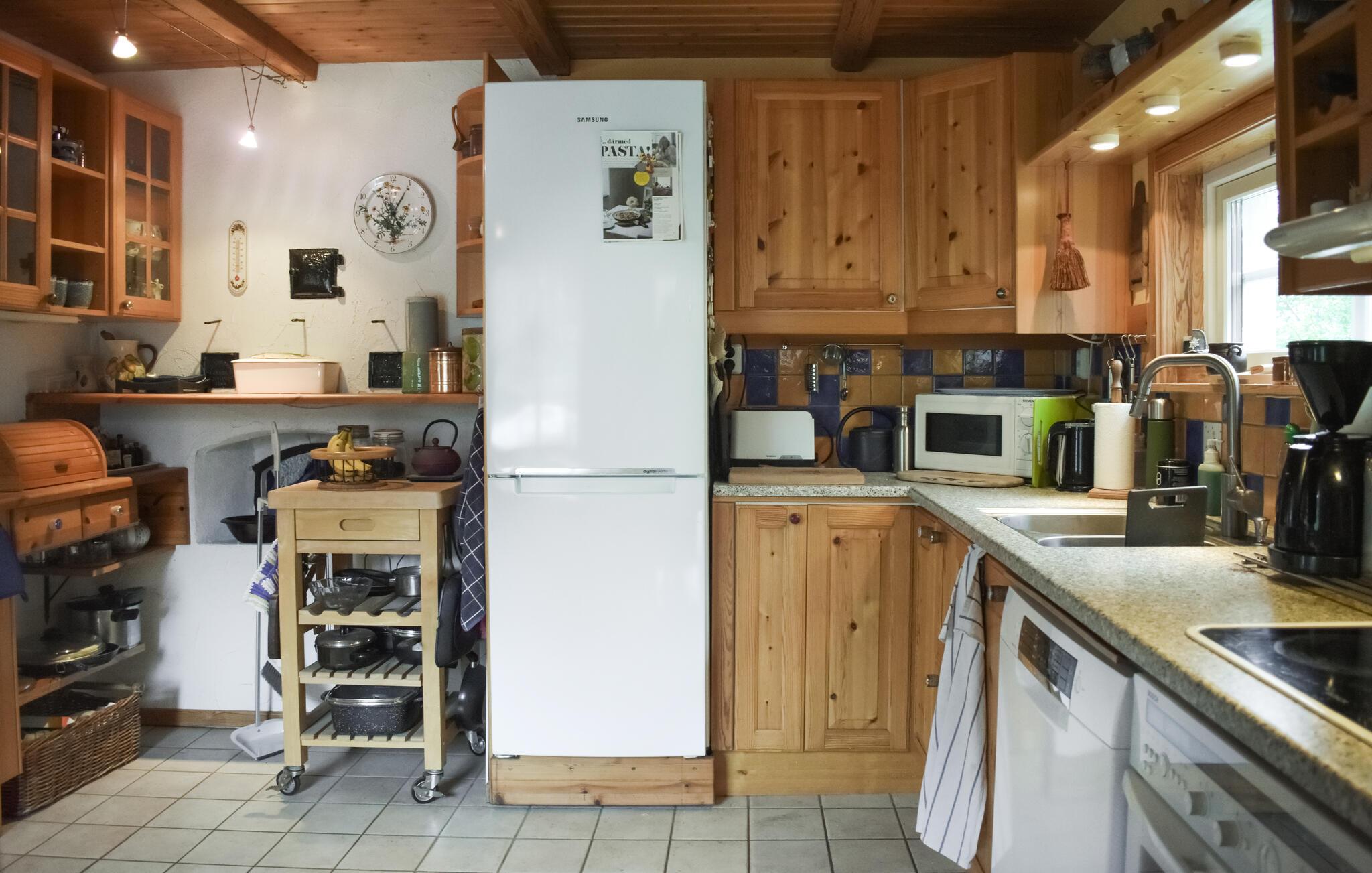 Velkommen til dette skønne træhus, der ligger midt det grønne på en stor grund, og hvor I får en charmerende base for årets familieferie. Indretningen fremtræder pænt og rustikt med kærlige detaljer i udsmykningen, der giver det indre et hjemligt strejf og gør det nemt at slappe af med det samme, I ankommer. Hvis vejret bider lidt fra sig, kan I tænde op i brændeovnen, og hvis I skal varmes endnu mere igennem, kan I forkæle jer selv med en lækker svedetur i saunaen efter aftensmaden.