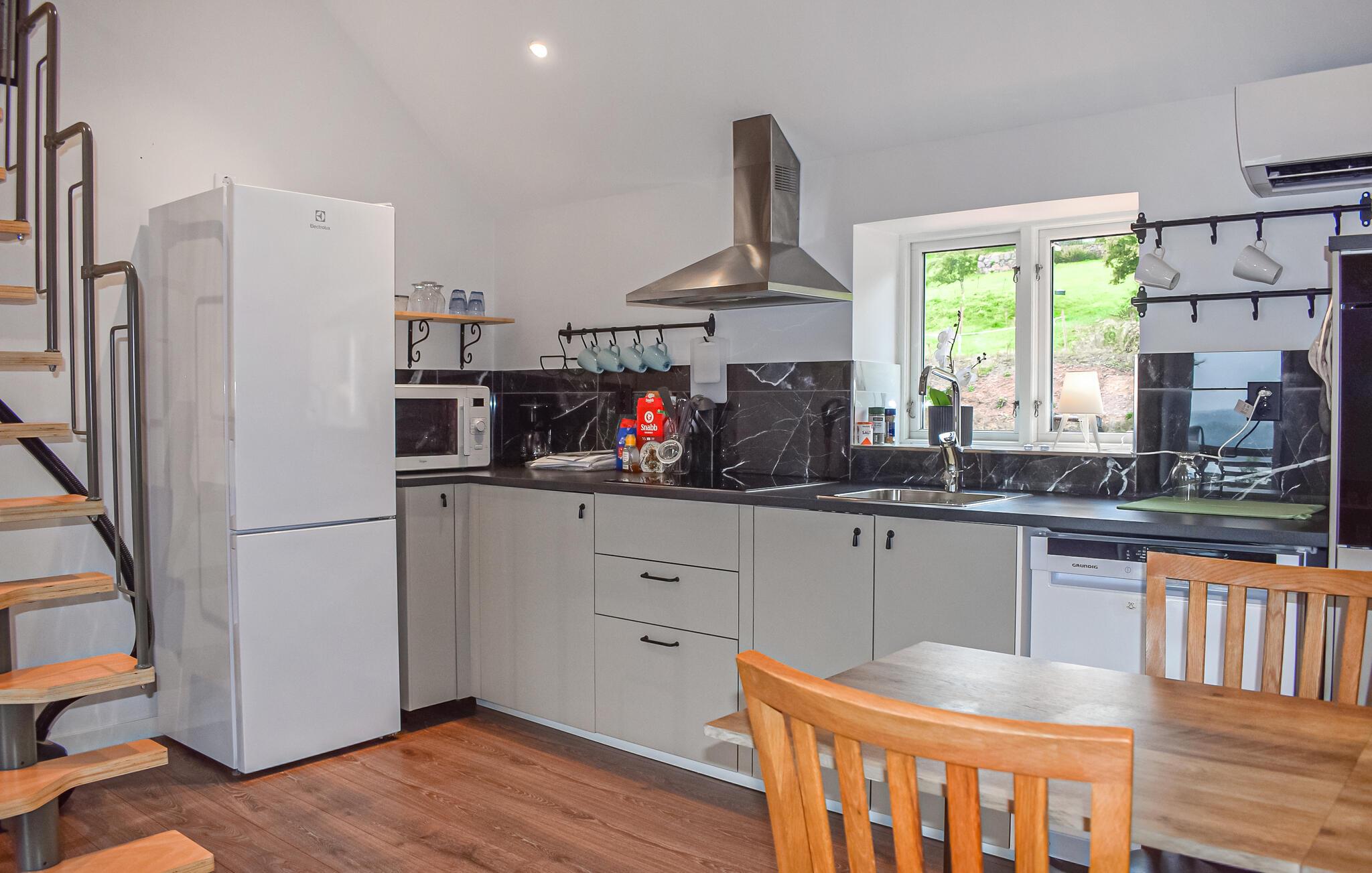 Dette smukt beliggende hus er perfekt til en afslappende pause fra hverdagen. En komfortabel sofa og et moderne køkken skaber en atmosfære, hvor I hurtigt kan skifte til ferietilstand. Uanset om I lytter til en spændende podcast, nyder en afslappet kop kaffe eller laver mad sammen, sætter I her tempoet for dagen.