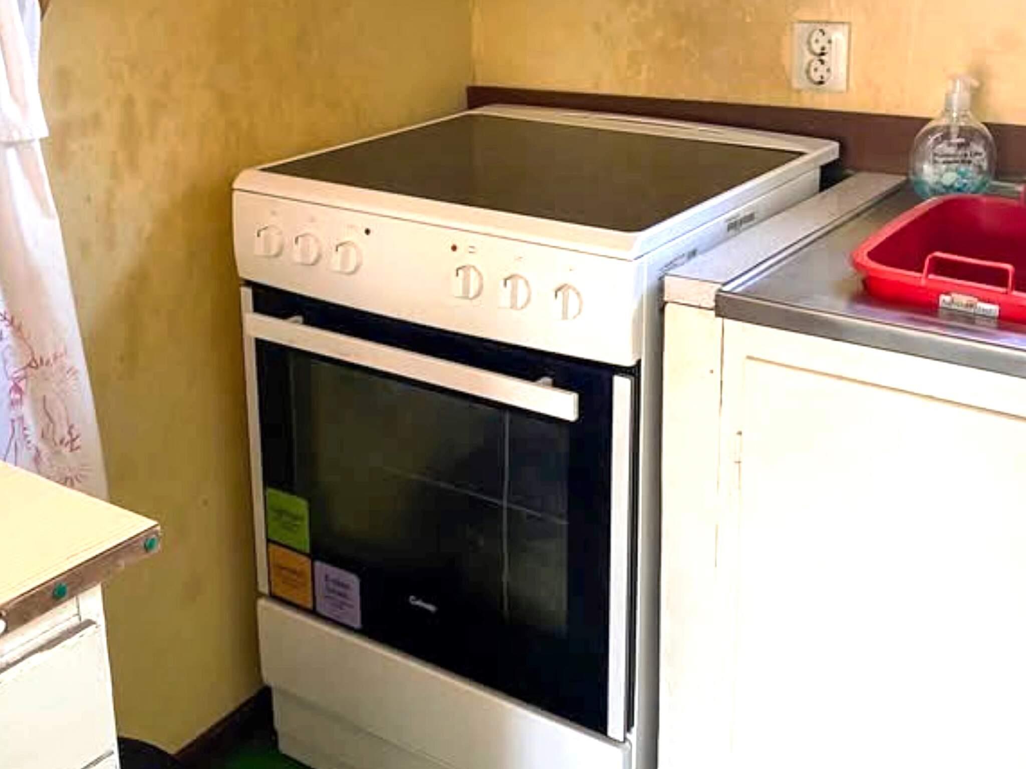 Køkkenafd.: høj stol, el-komfur, køle-frys, mikroovn, emhætte, kaffemaskine