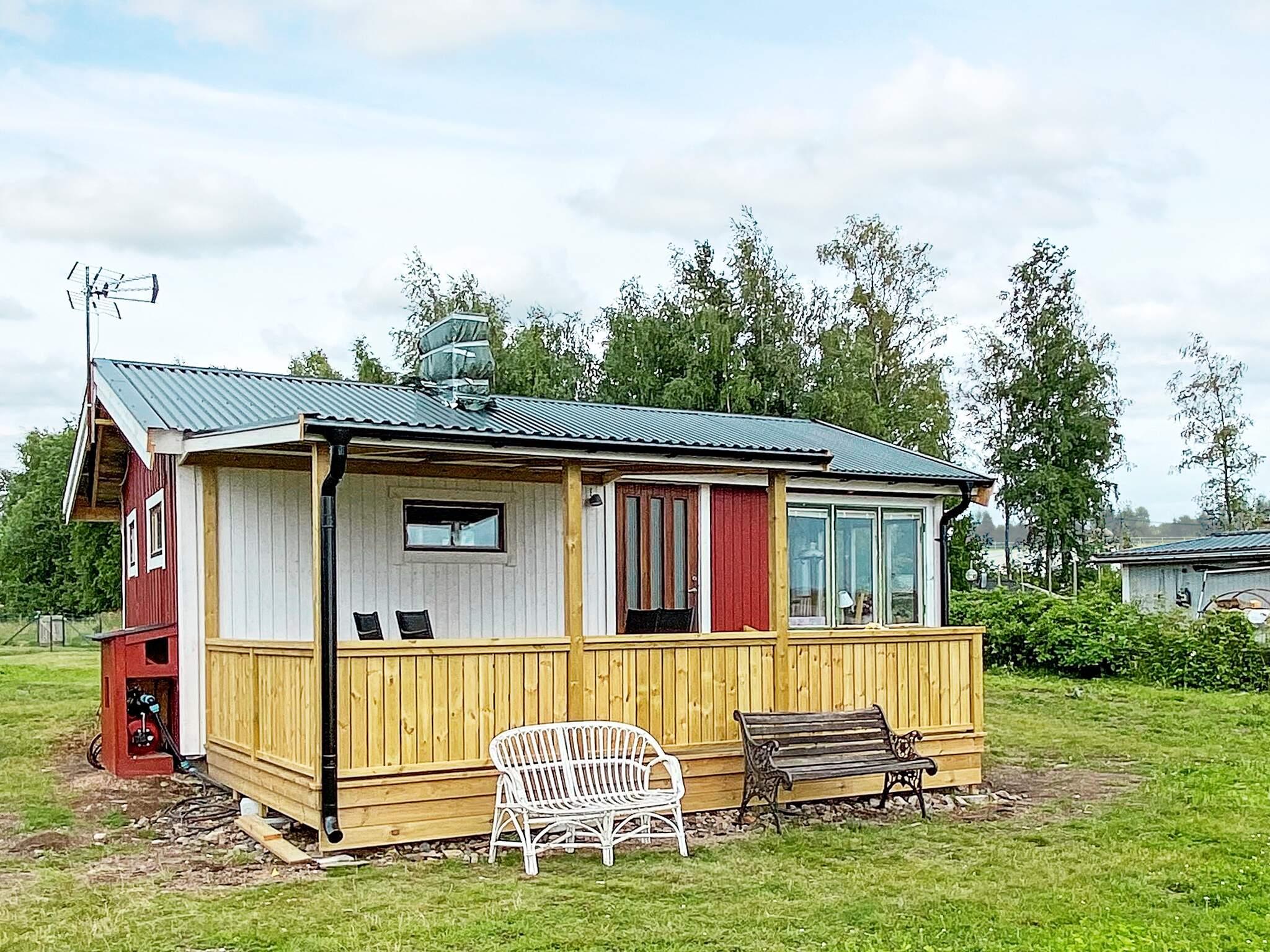 Du välkomnas in på en liten veranda med tak, genom entrén kommer du rätt in i vardagsrummet där det finns köksbord med fyra stolar, en stor härlig bäddsoffa för två personer, tv, ett litet kök där det mesta som man behöver till matlagning finns, här finns ångkokare för att värma upp vatten, en öppen spis där ni i dagsläget är kan tända stearinljus för mysfaktorn, ett sovrum med en våningssäng. Själva stugan är mycket enkel, sjövatten är indraget så det finns inget kommunalt vatten eller egen brunn, husägarna ställer in vattendunk med dricksvatten som du fyller på efterhand på angiven plats. Toaletten som ligger i en separat byggnad är en förbränningstoalett, till stugan finns en utedusch med varmvatten som värms av solen.
