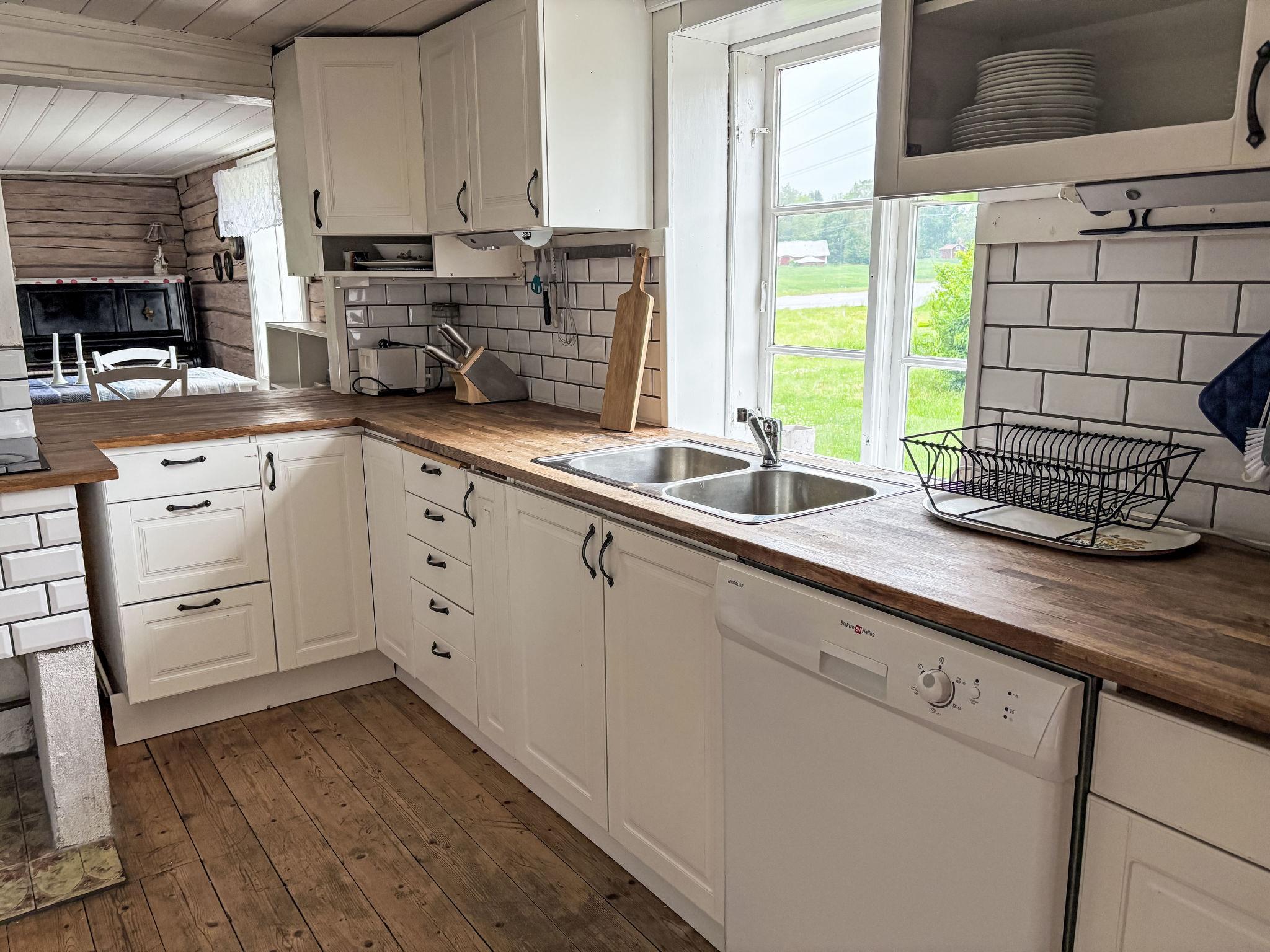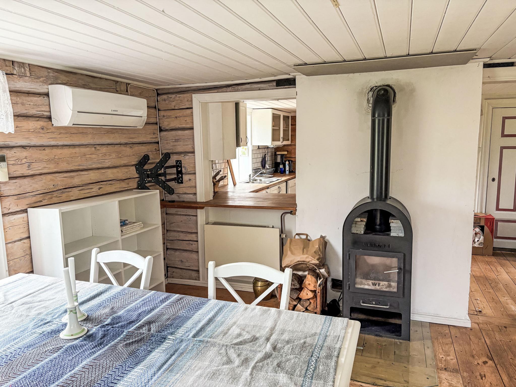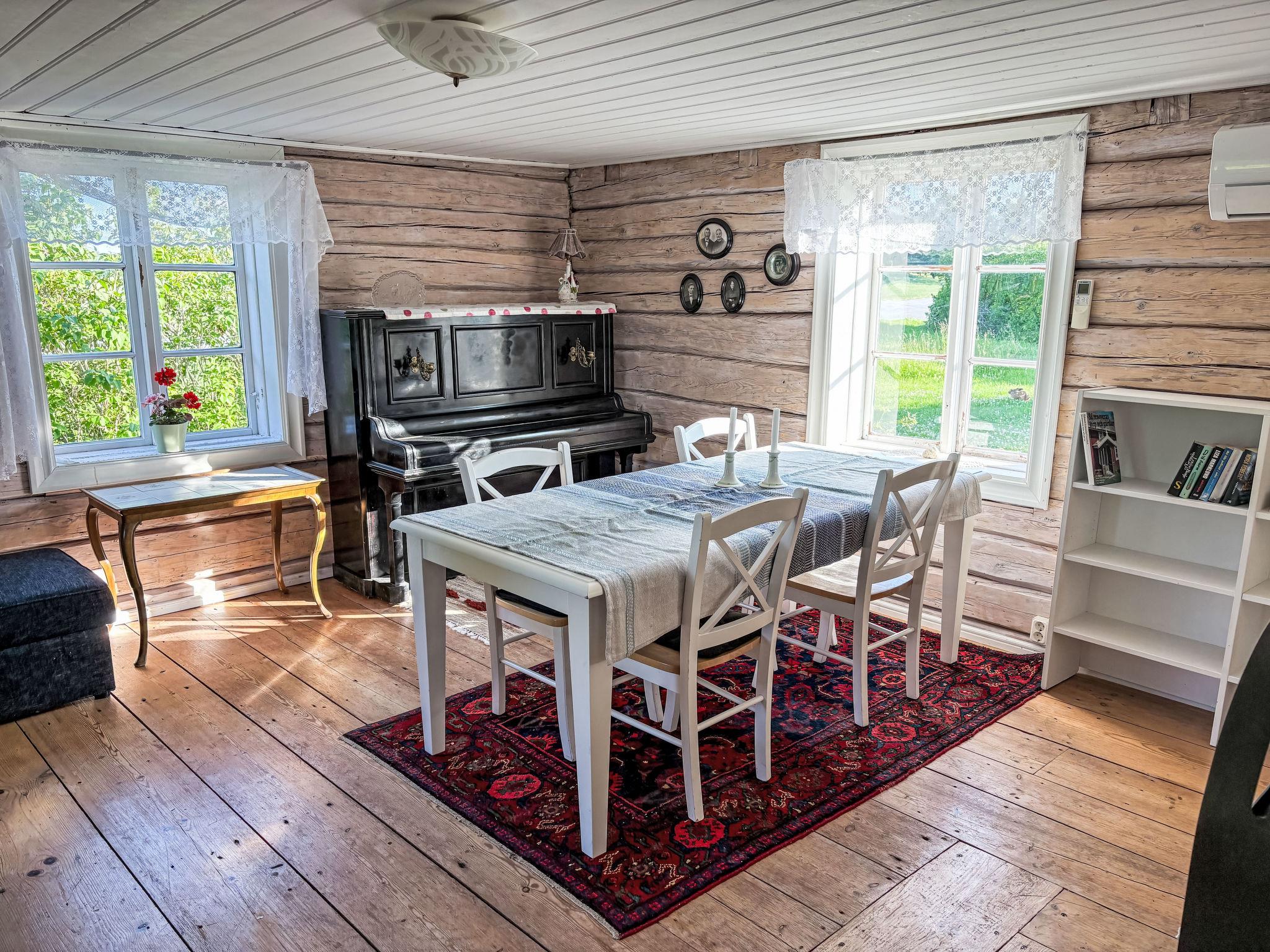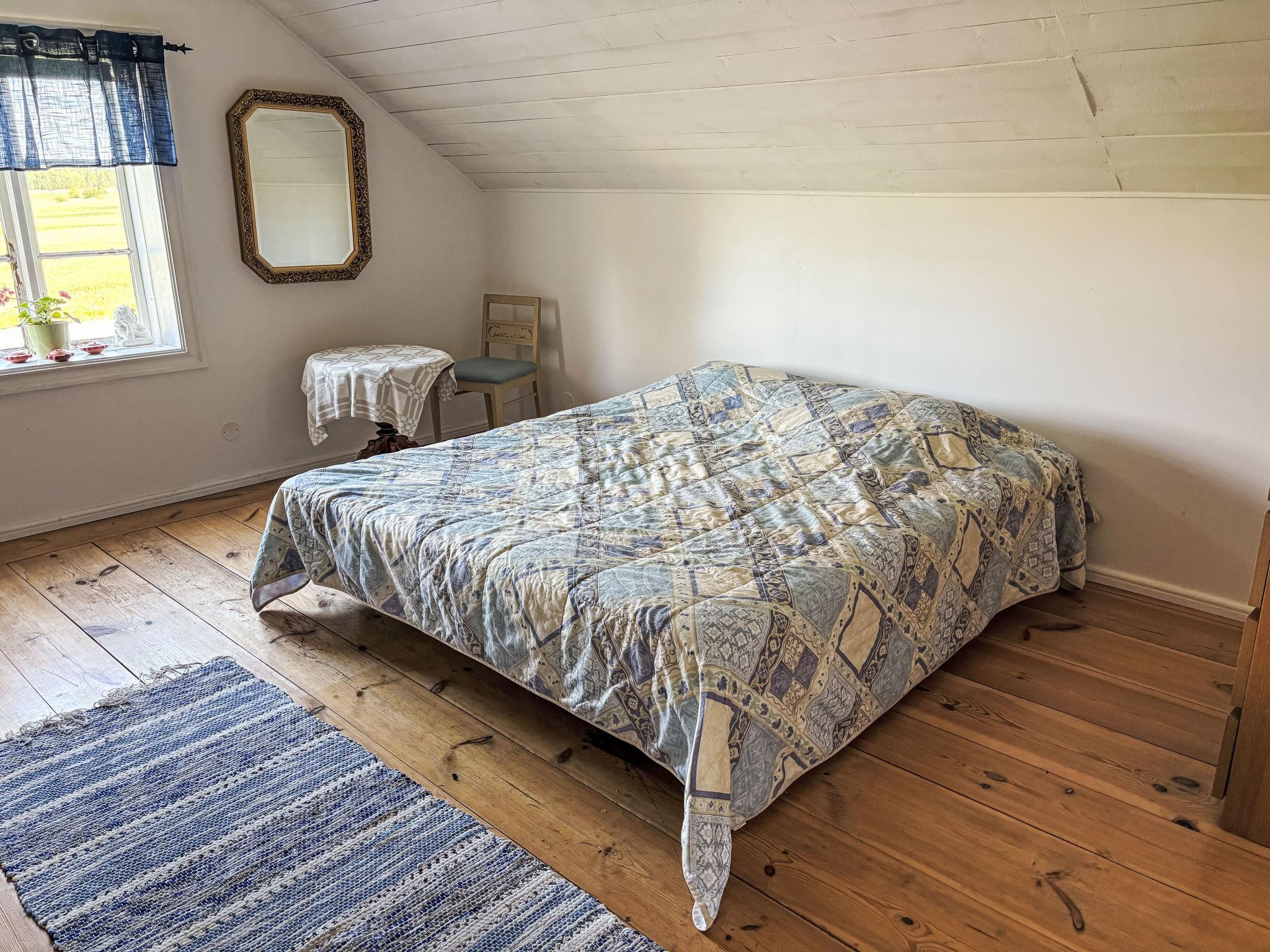 "Skyberga Torp", 3-room house 123 m2 on 2 levels. Spacious and bright, with sloping ceilings, very tasteful and cosy furnishings: living room 25 m2 with open-hearth fireplace. Dining room 25 m2 with dining table. Exit to the garden, to the veranda. Large kitchen (4 hot plates, oven, dishwasher, microwave, freezer, electric coffee machine, steamer) with Scandinavian wood stove. Upper floor: living/sleeping room 45 m2, with sloping ceilings with 1 double bed (180 cm, length 200 cm). 1 room 15 m2 with 1 double bed (180 cm, length 200 cm). Bath/WC. Heating, electric heating, air-conditioning (100 litres). Wooden floors. Comfortable furnishings in the country house style. Small terrace 18 m2, garden. Terrace furniture, barbecue (portable). Beautiful view of the countryside and the forest. Facilities: washing machine, iron. Please note: non-smoking house. Private entrance, smoke alarm, fire extinguisher. Instead of an enclosed bedroom, some sleeping areas are located in an open-plan area (gallery, alcove, etc.).