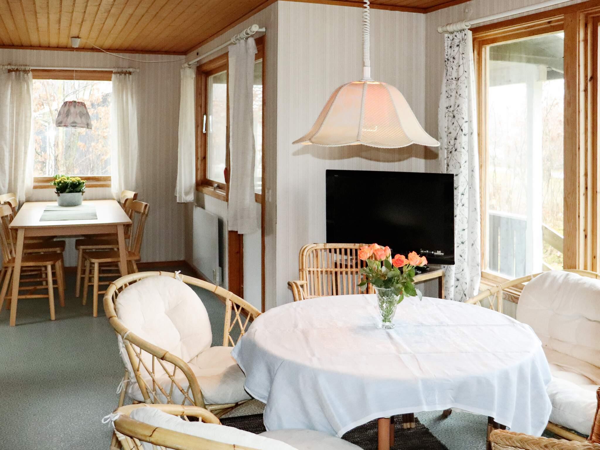 Stugan har två sovrum med två enkelsängar i varje. Badrummet har dusch. Köket är öppet ut till vardagsrummet och här finns all utrustning ni behöver. Vardagsrummet har både matplats och sittmöbler samt en TV. TV:n har inga installerade kanaler utan går att kolla på via cromecast eller DVD. Härifrån har ni utgång till en mindre altan under tak. Det finns ytterligare trädgårdsmöbler och grill att placera på tomten efter önskemål om sol eller skugga.