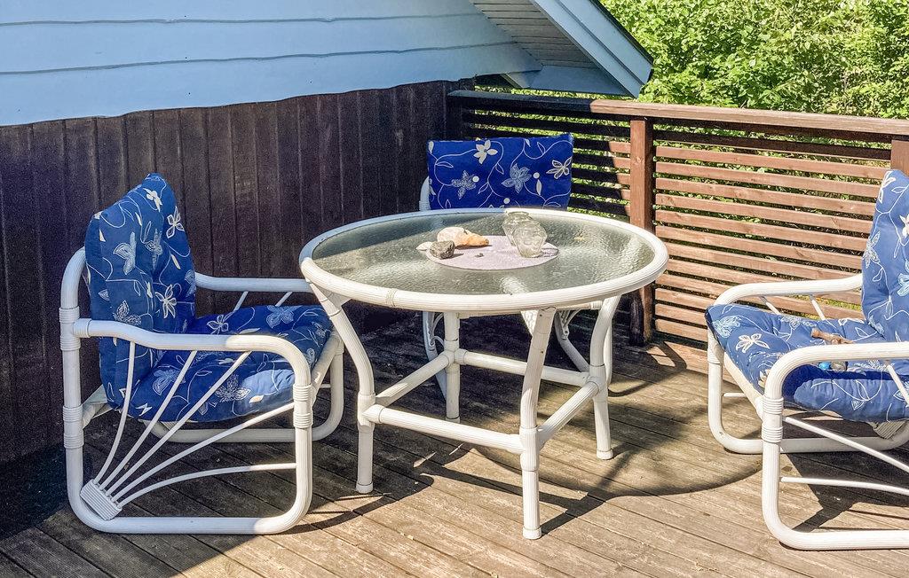 Dette hyggelige sommerhus består af 2 enheder, hvor hovedbygningen har 2 soveværelser, en hyggelig og indbydende stue kombineret med det friske og veludstyrede køkken samt toilet og brusebad med sauna indenfor. Overfor det mindre hus er en stor og meget indbydende terrasse med komfortable møbler, ideel til at tilbringe mange lange dage i solen eller nyde måltider sammen. På den anden side af terrassen ligger den mindre enhed og her er der 1 soveværelse med en lille dobbeltseng på ca 140 cm. I det andet rum er der en sovesofa og et lille køleskab. Et af soveværelserne er et sammenhængende rum til naboværelset.