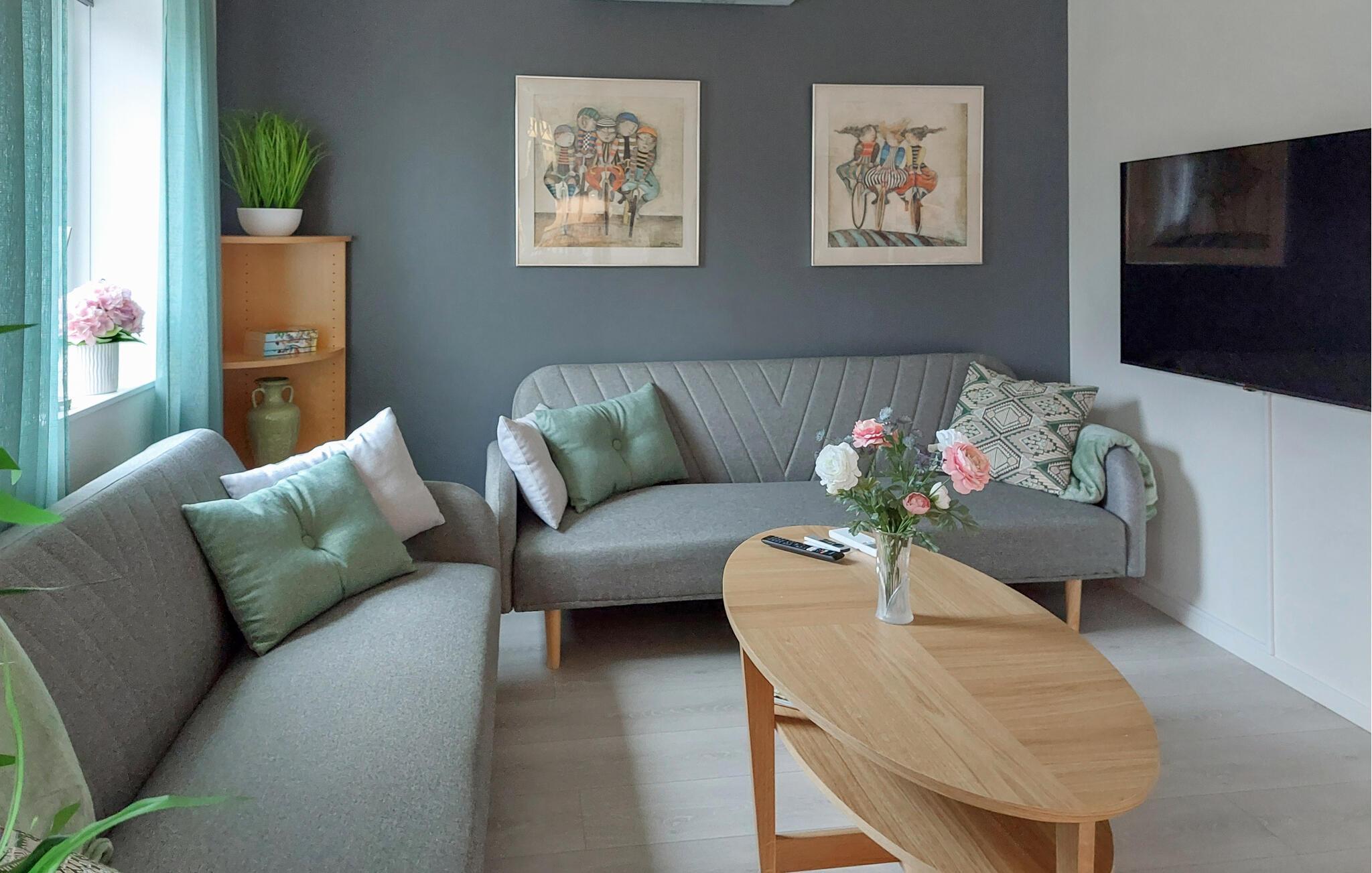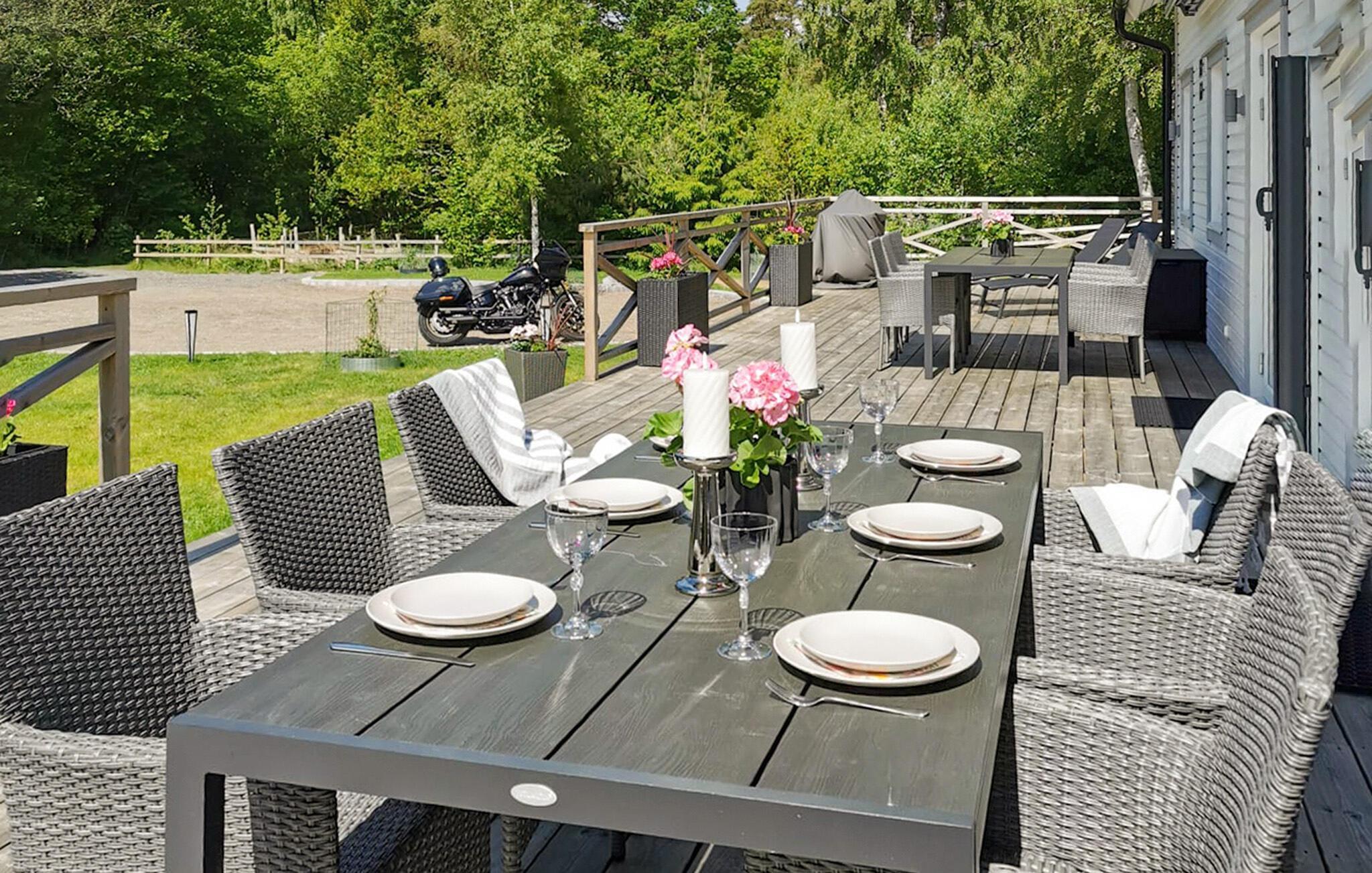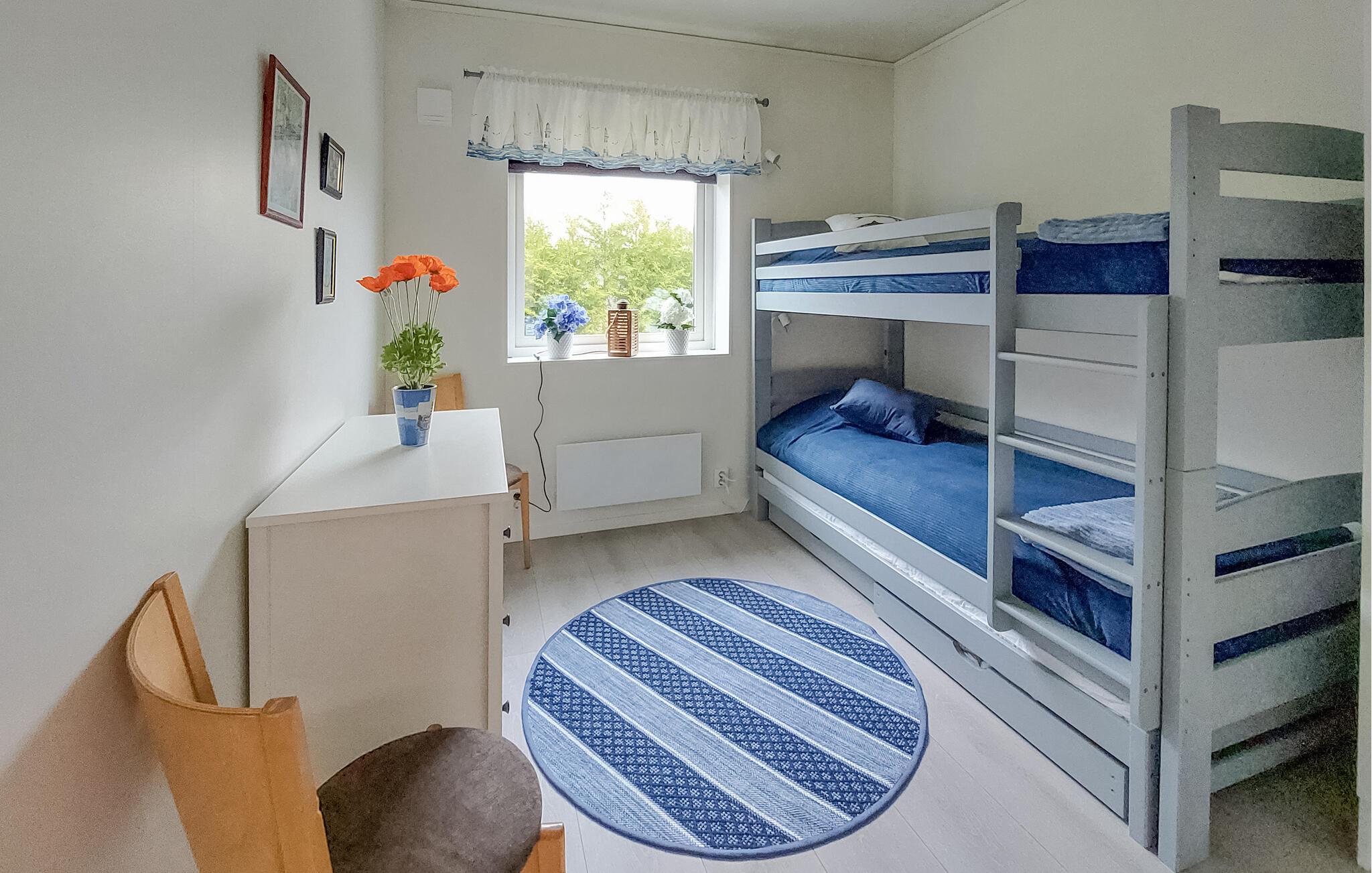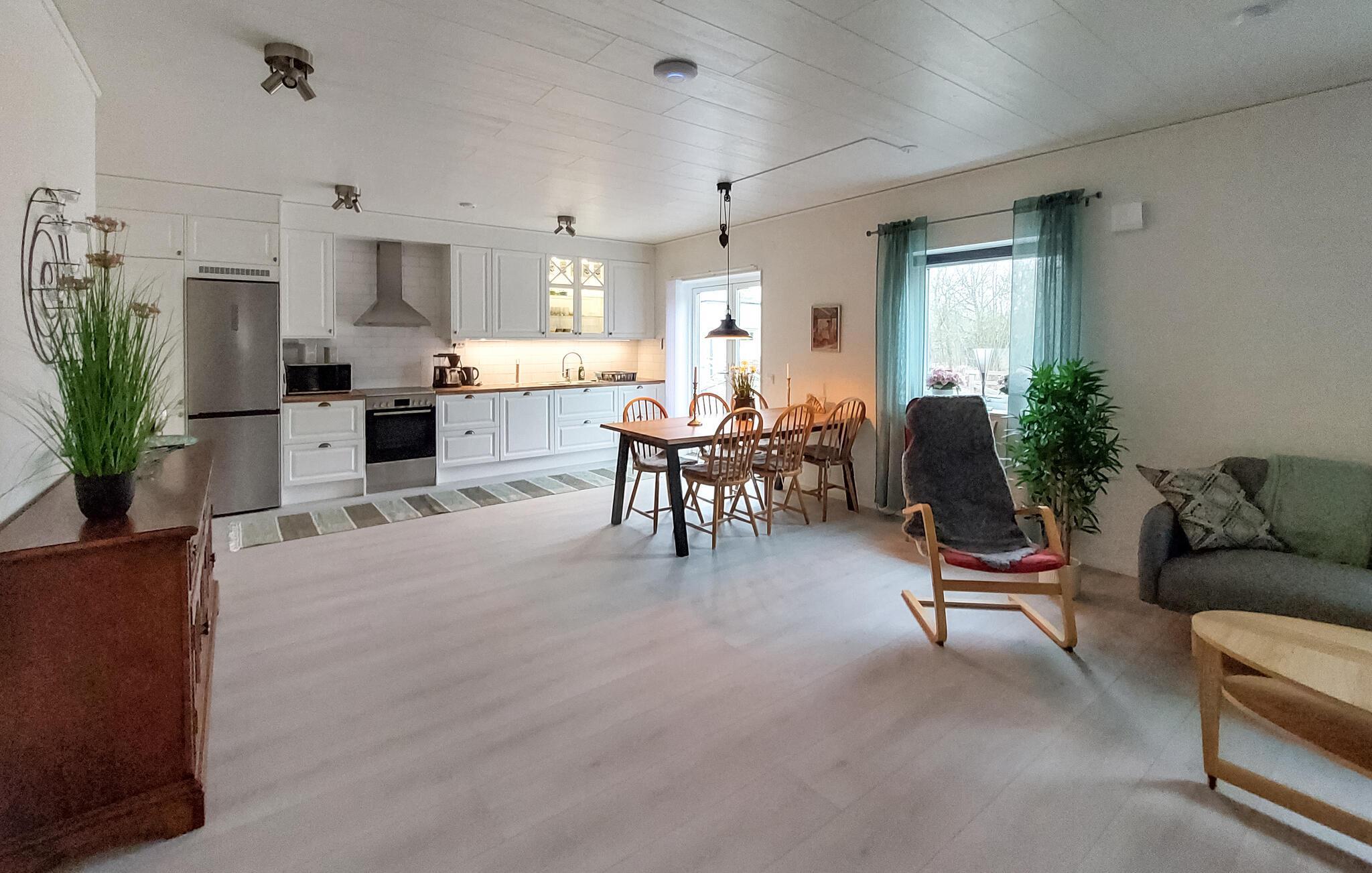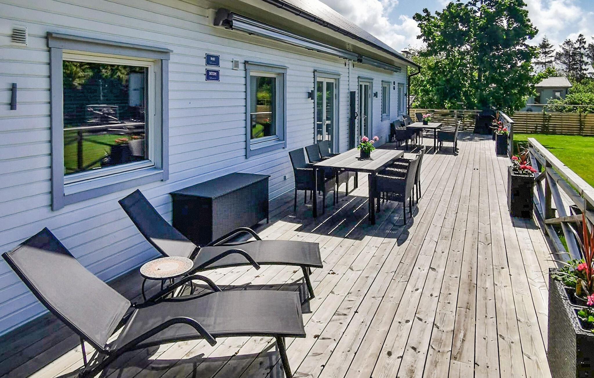 Tilbring jeres næste ferie i dette feriehus på den svenske vestkyst. Huset ligger i rolige omgivelser og tilbyder jer det ideelle udgangspunkt for afslappende dage og en række aktiviteter. Den lyse opholdsstue er noget særligt med komfortable sofaer, stilfulde dekorationer og et åbent spisekøkken. Slap af her efter en lang dag eller nyd rolige timer med familie eller venner. Lav mad sammen i køkkenet og tag derefter plads ved det store spisebord og tilbring selskabelige sammenkomster og lange aftener.