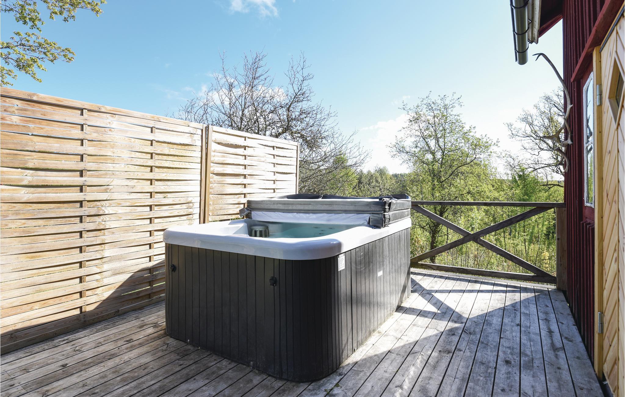 Fred, ro og masser smuk natur er, hvad der venter jer i dette store og hyggelige træhus med spabad og sauna. Her får I godt med plads til et ophold som familie, langt væk fra hverdagens stress og jag. Efter en begivenhedsrig dag kan I smække fødderne op i sofaen, nyde den knitrende ild fra brændeovnen og smide en god film på tv'et. Skal I gøre det lidt ekstra lækkert for jer selv, kan I nyde god wellness i saunaen eller i spabadet på terrassen, mens I lægger planer for de kommende dage.
