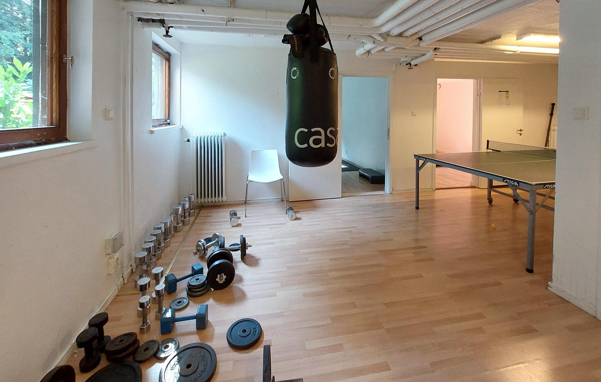 Benyt jer af de mange fritidsmuligheder i området. Hold jer i form i fælles fitnessrummet eller spil en omgang bordtennis. Tag afslappende gåture på vandrestierne, som begynder lige foran jeres ferielejlighed, og oplev den smukke natur i området. Nærheden til skoven lægger op til at samle svampe og bær samt nyde roen.