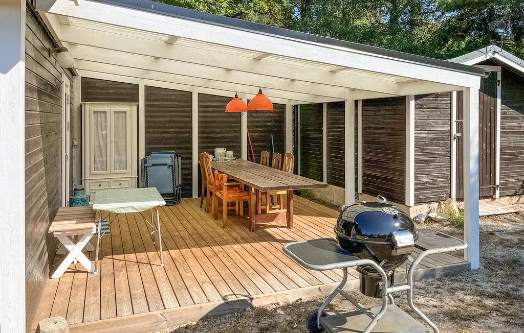 Fint feriehus på en solrig plet i strandskoven, kun 150 m fra stranden i Löderups Strandbad. Til huset hører to dejlige terrasser og det ligger på en skøn børnevenlig grund. Besøg gerne Kåseberga, med restauranter og fiskerøgerier. Her er det også oplagt at besøge det mytiske Ale Stenar, som er nordens største skibssætning. I denne del af Skåne er der meget at se om sommeren. Hyggelige små fiskerlejer med cafeer og restauranter. Atelier med kunstnernes smukke værker. Der er 20 min til Simrishamn og i Sankt Olof kan I køre med damptog gennem Österlen. Der er kun 15 minutter til Ystad med mangfoldige butikker og konditorier, samt med færge til Bornholm og Polen.