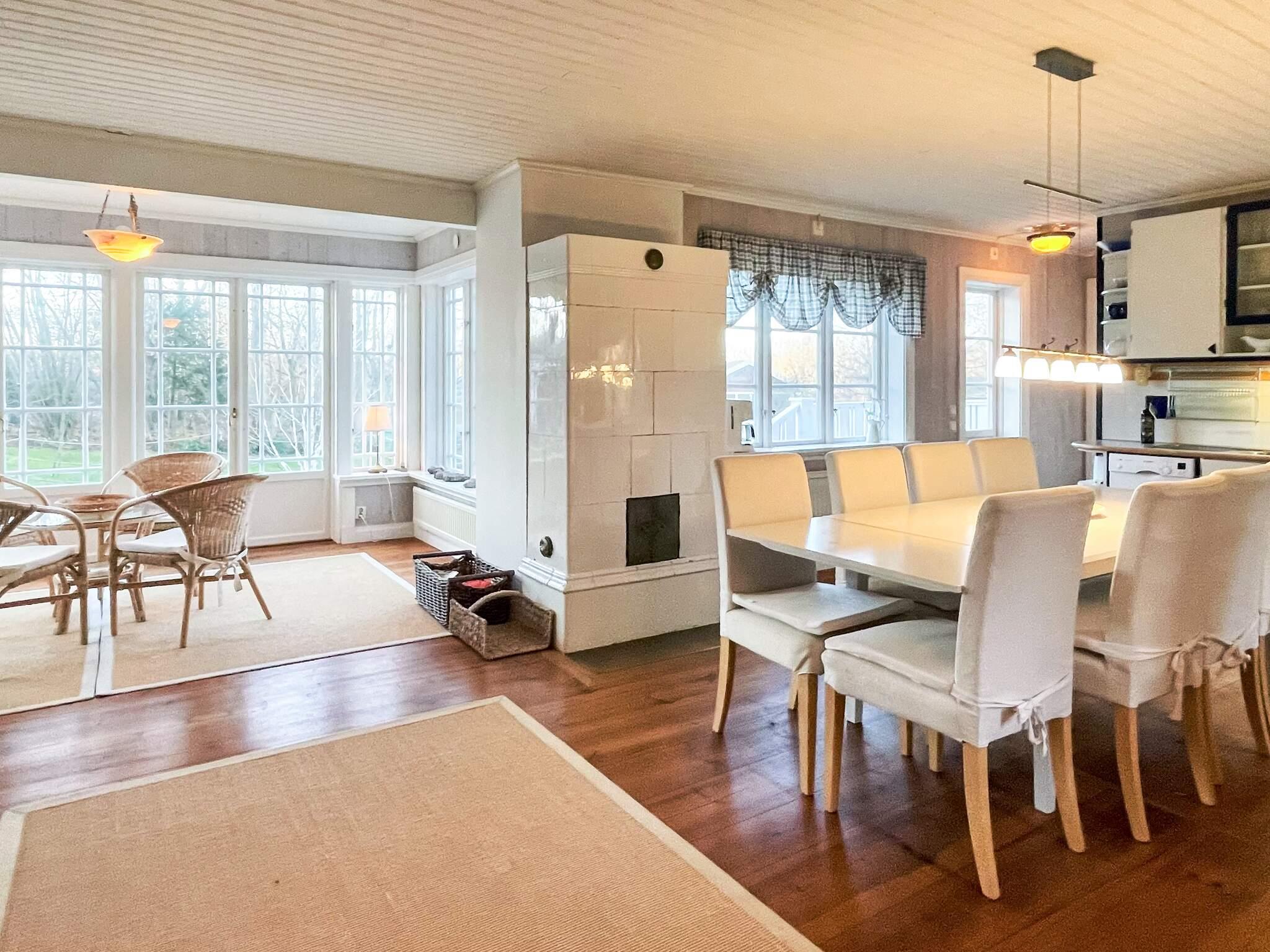 Huset har ett vackert inglasat rum där du kan njuta av den härliga atmosfären och den fina utsikten. Här kan du öppna upp mot den trevliga uteplatsen. Köket är öppet med stora vardagsrum där det finns ett stort matbord framför den vackra kakelugnen. Vardagsrummet ligger på övervåningen med tillgång till den trevliga balkongen med utemöbler. I vardagsrummet finns lyxiga bekväma soffor där du kan luta dig tillbaka framför TV:n eller den vackra kaminen. Ta med egen ved om du vill ha en brasa i kaminen eller kakelugnen.