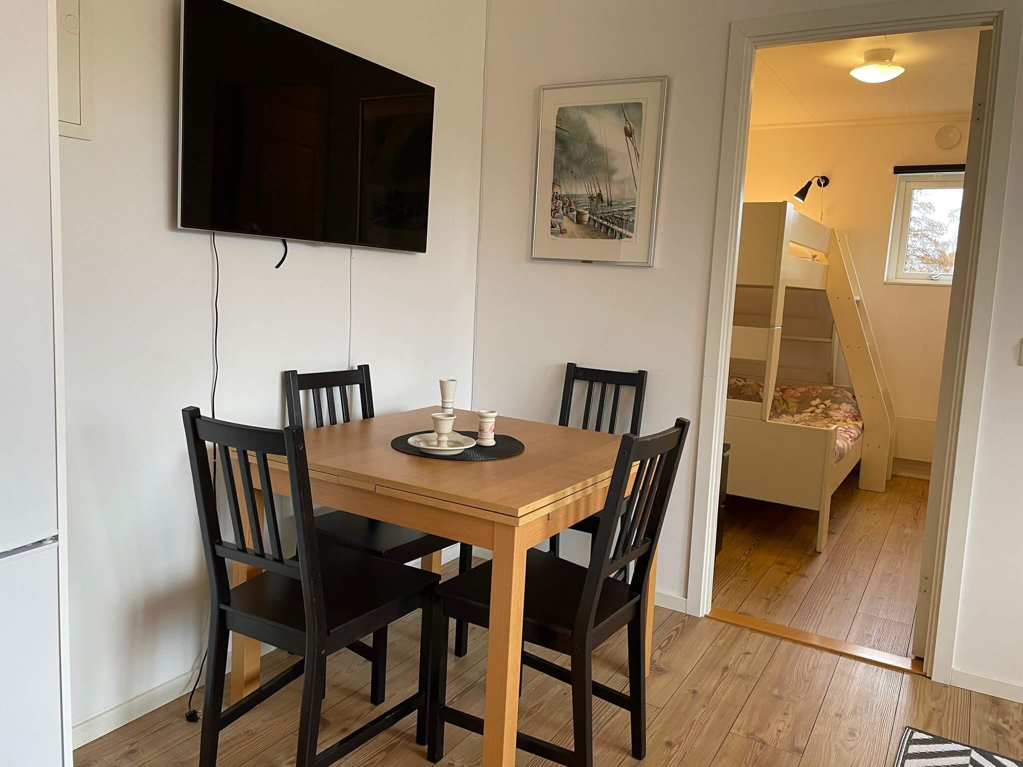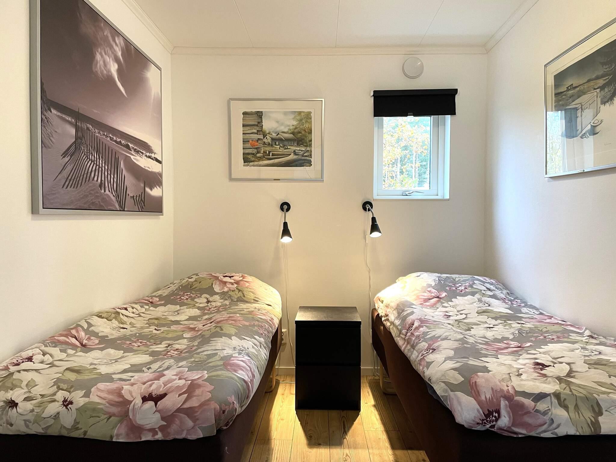 Stugan har öppen planlösning med stora fönster för rymd och fint ljusinsläpp. Modernt välutrustat kök med diskmaskin samt matplats. Soffa samt skön fåtölj med tv där ni har Viaplays lilla paketutbud av kanaler. Ni har tre sovrum, det ena med två enkelsängar som går att flyttas samman samt två sovrum med vardera en våningssäng. Fräsch toalett med dusch.