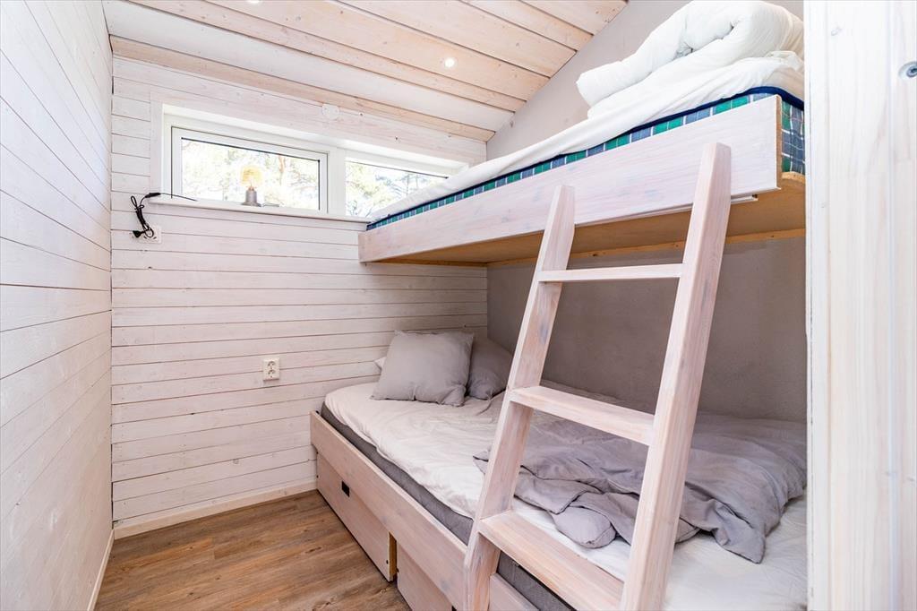 Huset blev færdiggjort i 2025 og har en høj standard. På ca. 80 m² er der plads til op til 4 personer. Der er to soveværelser: ét med dobbeltseng (180 cm) og ét med køjeseng (120 cm nederst, 90 cm øverst).