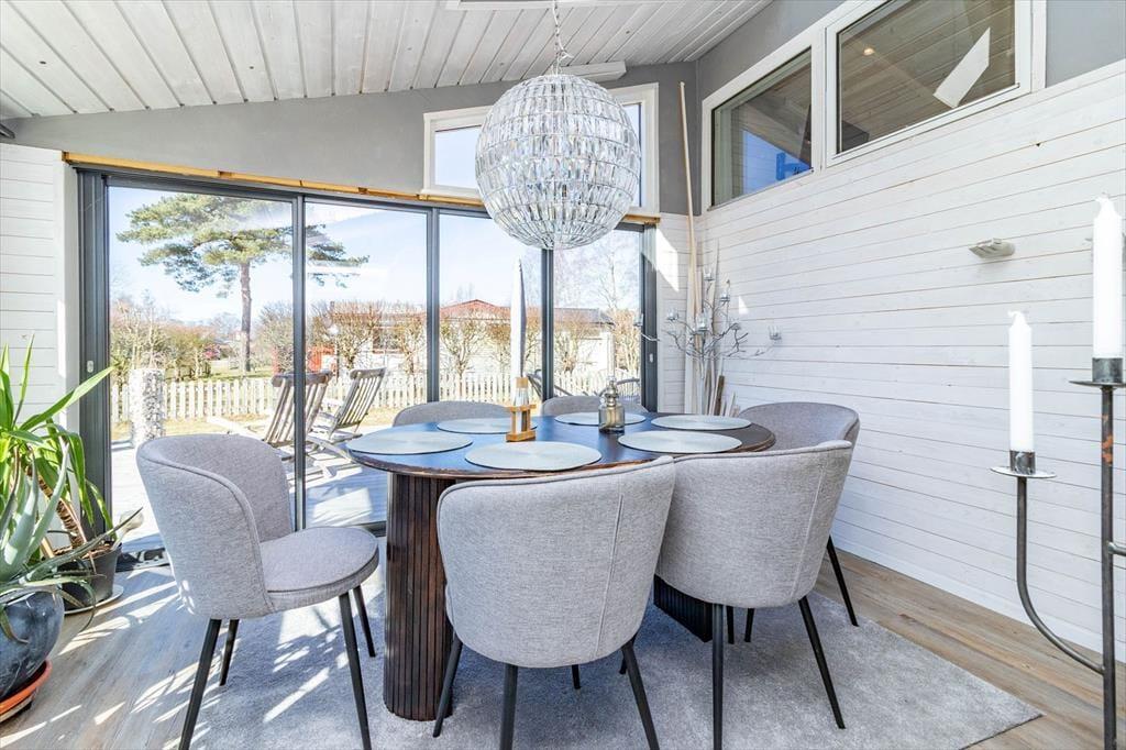 Fra stuen er der adgang til den lyse, fuldt indglasede udestue, som også fører ud til terrassen. Huset opvarmes med luftvarmepumpe.