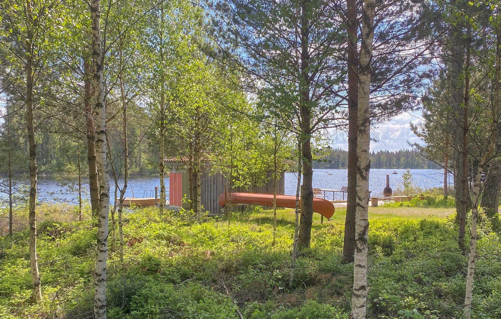 Den nærliggende sø bliver en destination for mange afslappende ture i den friske luft. Om sommeren kan I slappe af på kysten og bade i søen. Måske kunne I tænke jer at tage på en idyllisk sejltur? Så benyt jer af robåden. Om vinteren kan I tage friske gåture, glæde jer over det fortryllende vinterlandskab og bagefter varme jer foran brændeovnen i huset.