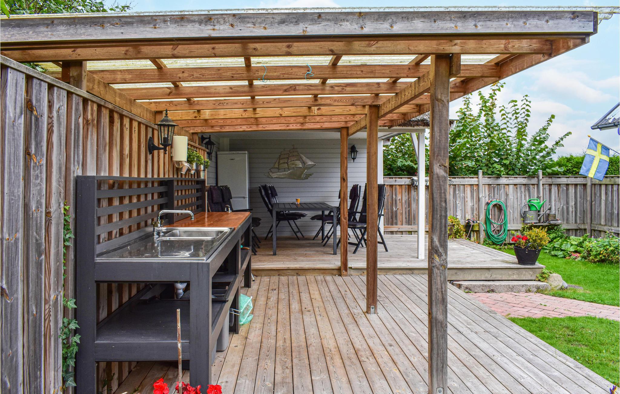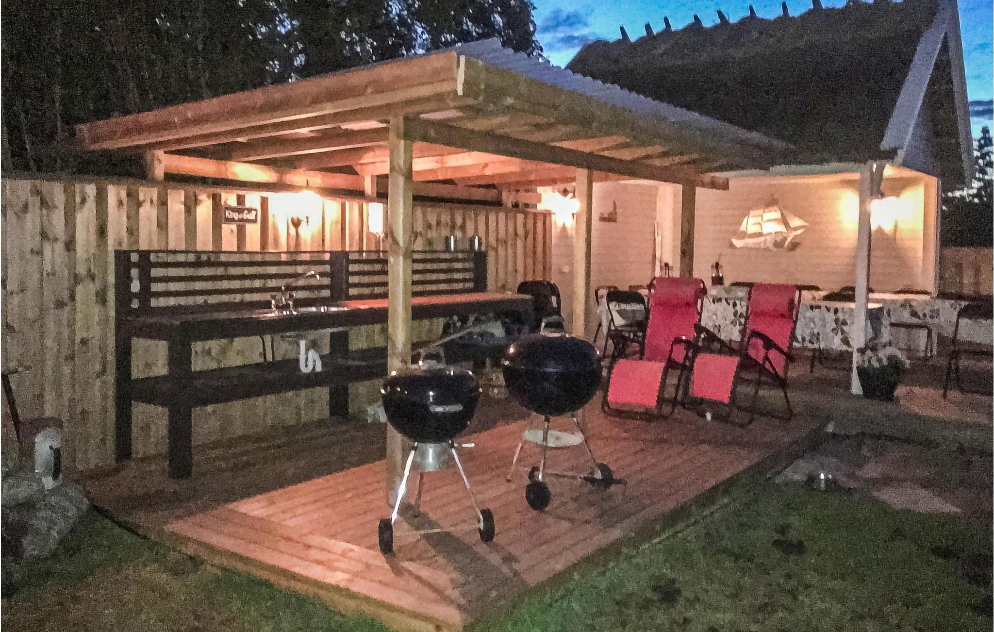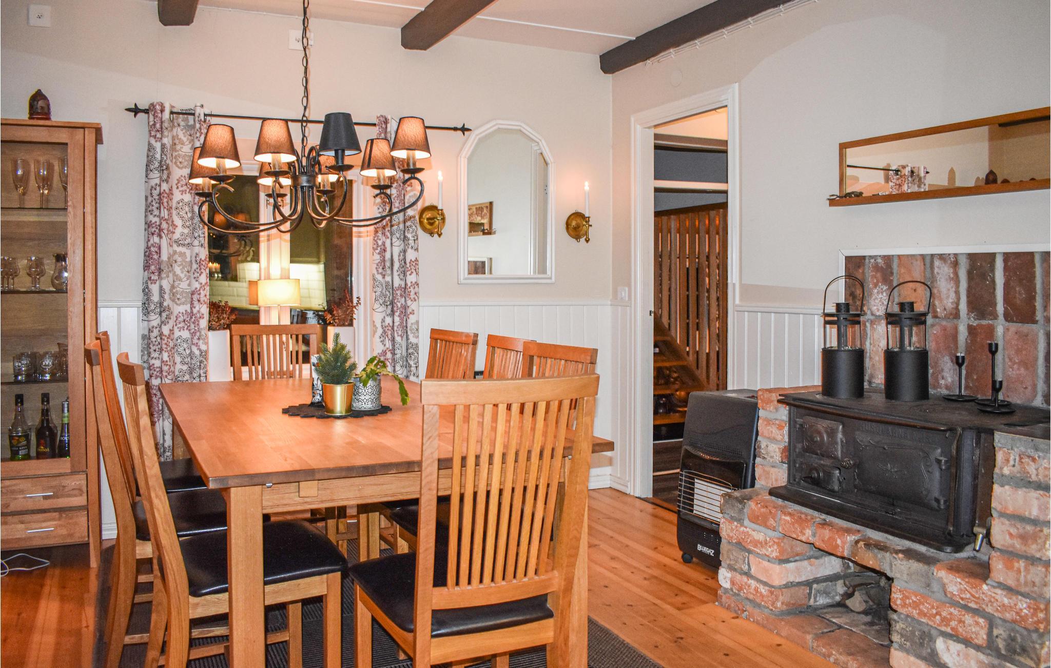 Her bor du i smuk natur og nær Hanö-bugten, som kun ligger 150 m fra huset. Vandet omkring sommerhuset er kendt for sine gode betingelser for geddefiskeri. Her venter en privat ejendom og en overdækket terrasse til behagelige timer i den friske luft. Indvendigt tilbyder feriehuset en hyggelig atmosfære. Saml familien rundt om spisebordet til afslappede middage, og diskuter dagens begivenheder. Den gamle pejs giver behagelig varme på kølige dage.