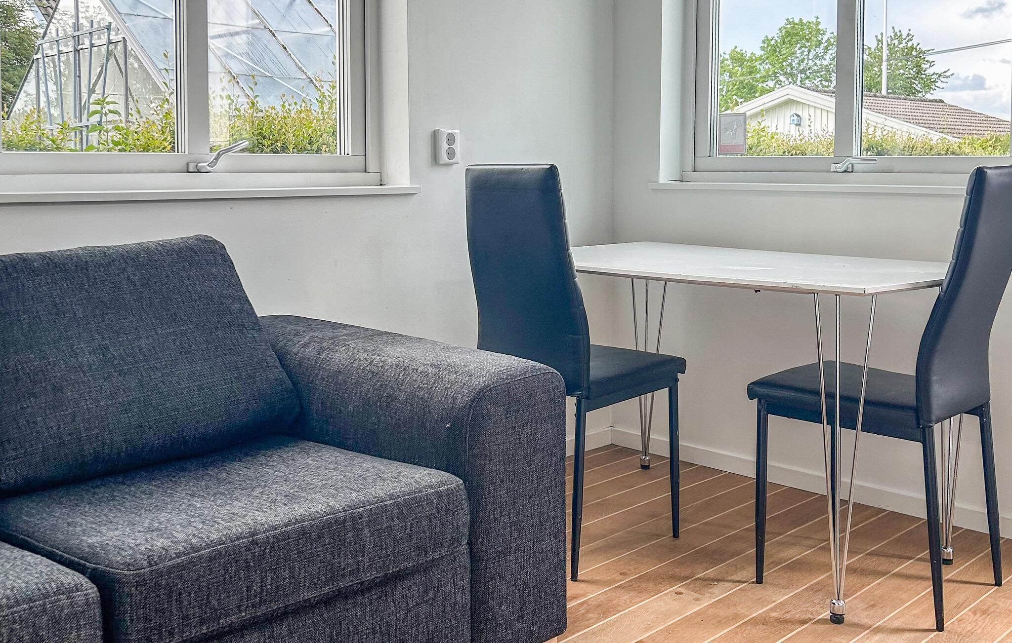 Dette charmerende lille feriehus tilbyder jer en behagelig indkvartering, perfekt til et ophold i naturen og samtidig tæt på byen. Den indbydende indretning og det lyse opholds- og soveområde skaber en afslappet atmosfære. Det enkelt udstyrede køkken indbyder til fælles måltider, og på terrassen kan I afslutte dagen med udsigt til det grønne. Den rolige beliggenhed gør huset ideelt for jer, der søger afslapning.