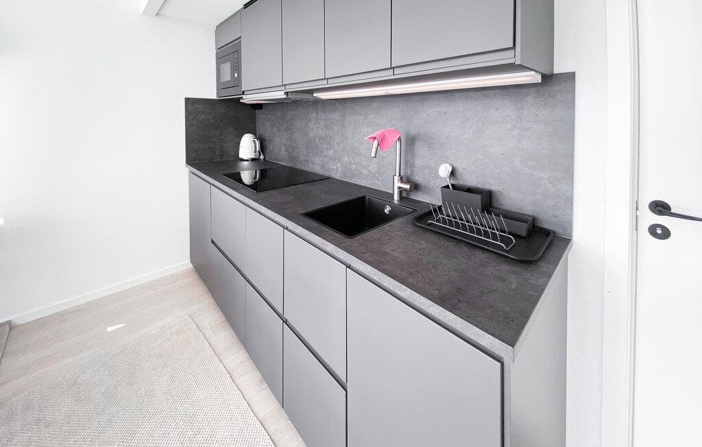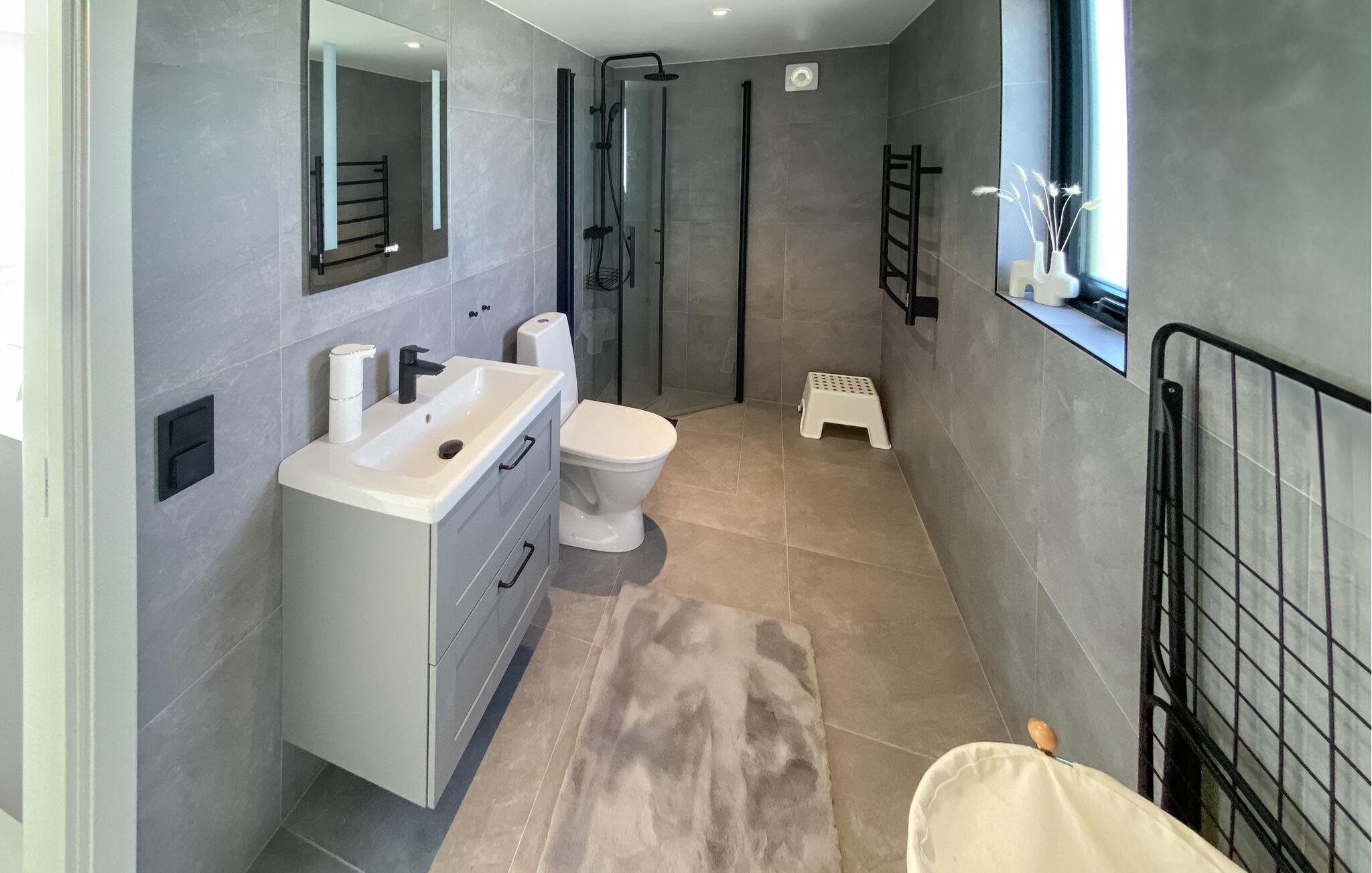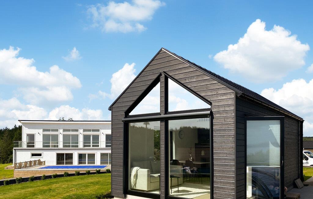 Nyd en moderne ferie i dette stilfulde feriehus i Lanesund. jeres sommerhus byder på komfort og en fantastisk udsigt over havet. Det nybyggede gæstehus imponerer med store panoramavinduer, der slipper masser af lys ind og giver udsigt til vandet. Start dagen med en afslappet morgenmad ved spisebordet og nyd den elegante ro, som dette hus udstråler. Brug det praktiske køkken til at tilberede jeres måltider, som I kan nyde i spisepladsen eller på terrassen. Det åbne rumdesign giver huset en særlig lethed. Slap af og slap af på terrassen, mens I stirrer på havet. Vil I være aktiv, så gå på opdagelse i det omkringliggende område, da feriehuset ligger tæt på indkøbs- og fritidsmuligheder såsom TORP Shopping Center og Haftsten Resort. Lej en kano, tag en bådtur eller besøg en af de nærliggende golfbaner. Gå en tur gennem Lanesunds charmerende gader, indånd den friske havluft og lad hverdagen bag dig. Vend tilbage til feriehuset om aftenen og nyd komforten og moderne faciliteter.