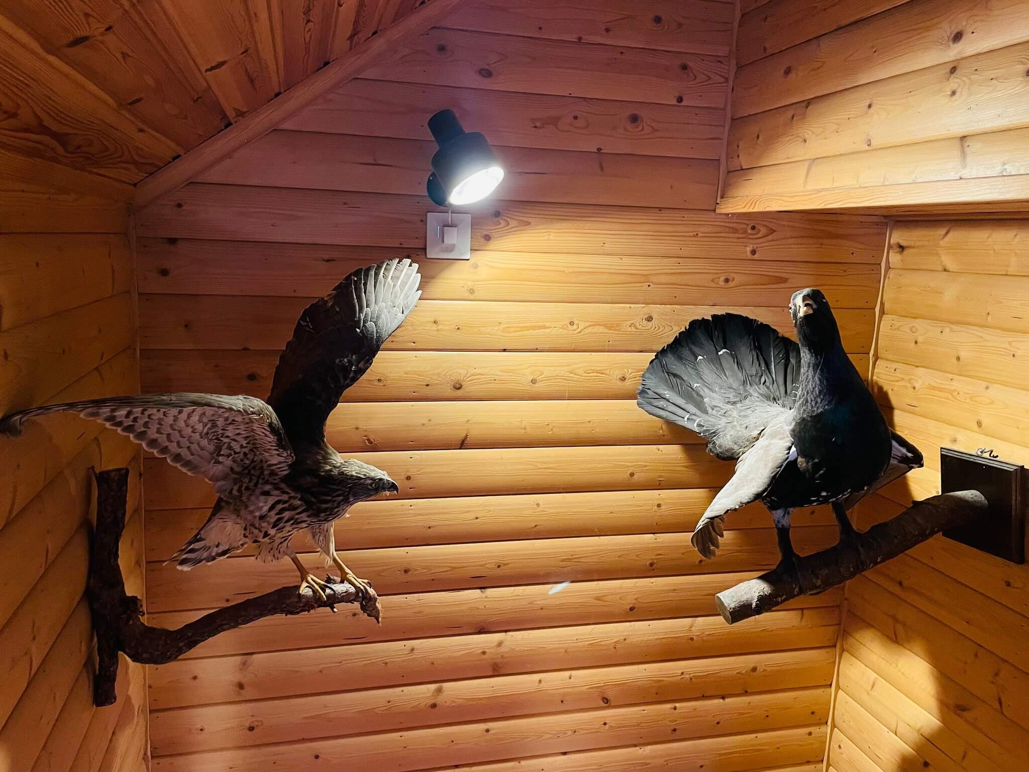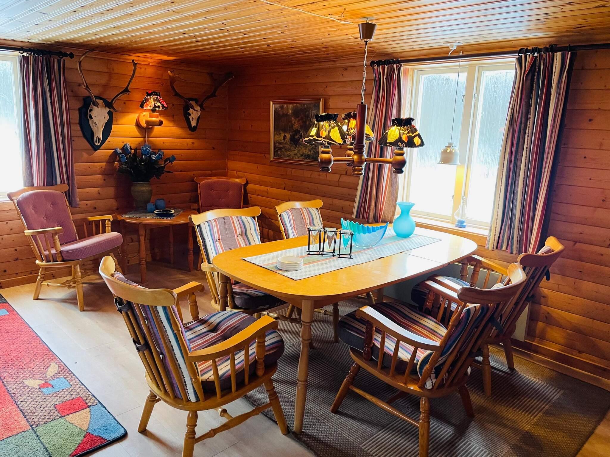 Huset präglas av en varm och ombonad atmosfär med generösa inslag av furuträ på både väggar och tak. De naturliga materialen skapar en mysig och genuin känsla som förstärks av de uppstoppade djuren som finns placerade runtom i huset. Här finns flera inbjudande sällskapsytor där familj och vänner kan samlas – oavsett om det är för långa middagar eller avkoppling framför brasan. TV finns i allrum med kanaler på flera språk. Köket är utrustat för självhushåll och har både disk-och tvättmaskin. Alla sovplatser finns en trappa upp. Ett sovrum med två enkelsängar som går att sätta ihop till en dubbelsäng. Stora sovrummet med högt till tak och öppen planlösning har dubbelsäng och sov loft med två tjockare madrasser placerade på golvet då takhöjden där är begränsad. Ytterligare ett sov loft med en madrass som enkelbädd. Till båda loften är det en brant trappa. Den charmiga övervåningen med alla sovplatser gör huset perfekt att bo i för vänner och familjer att dela på. Loftet blir snabbt en favoritplats för både stora och små – en extra mysig och avskild vrå.