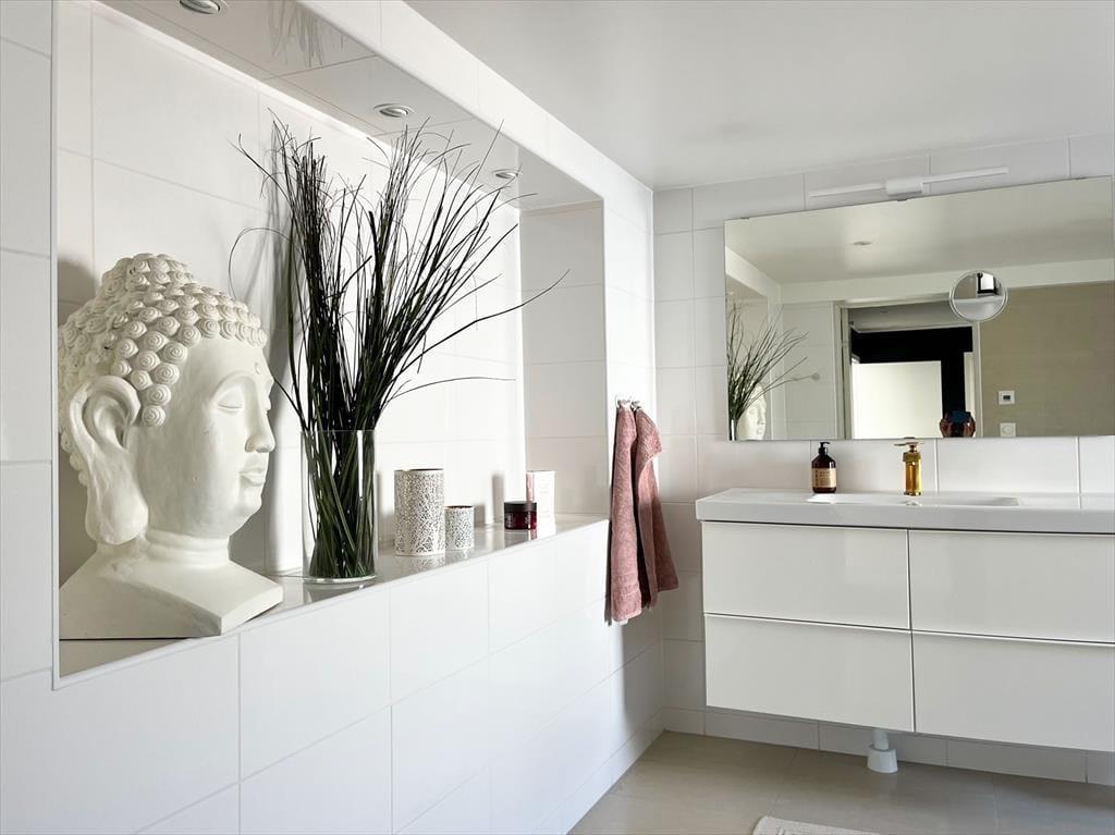 Det sommerhus, der blev bygget i 2016, har ca. 220 m² boligareal fordelt på 6 værelser, inklusiv et åbent køkken, to badeværelser og i alt tre toiletter. I nederste etage findes et soveværelse med dobbeltseng (180 cm) og eget badeværelse med bruser, badekar og toilet. I øverste etage findes to yderligere soveværelser – ét med dobbeltseng (180 cm), ét med enkeltseng (105 cm) samt en ekstra udtræksseng efter behov. Den åbne stue har store vinduer, en siddegruppe, tv samt evt. WiFi. På øverste etage findes en yderligere stue med siddegruppe og udsigt over søen. Køkkenet er åbent og udstyret med elektrisk komfur, ovn, opvaskemaskine, køle-/fryseskab, mikroovn og kaffemaskine. Et barbord med barstole samt spiseområde med spisebord og åben pejs fuldender rummet. Et barnestol stilles til rådighed efter ønske. Fra stue- og spiseområdet er der direkte adgang til den store veranda med havemøbler og grill. Der er vaskemaskine og tørretumbler i kælderen. Til huset hører tre parkeringspladser.