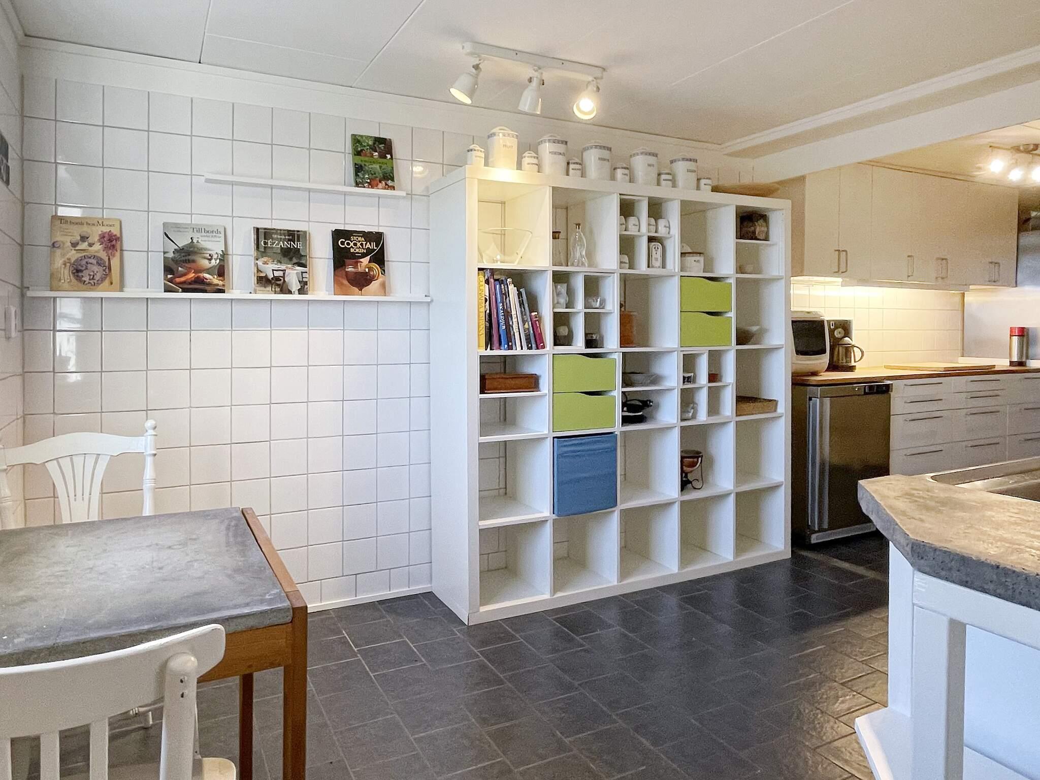 Du välkomnas in i en liten hall som sedan öppnar upp sig till ett stort välkomnade allrum med kök integrerar i ett. Köket är storslaget där man kan se att det varit restaurang med rejäl pizzaugn, spis och diskmaskin. Glasen hänger trivsamt i taket ovanför barbordet/kökbordet där man gärna samlas under middagen för samtal. Till vänster finns en liten alkov med en dagsbädd. Huset har totalt 8 sängplatser och två badrum.