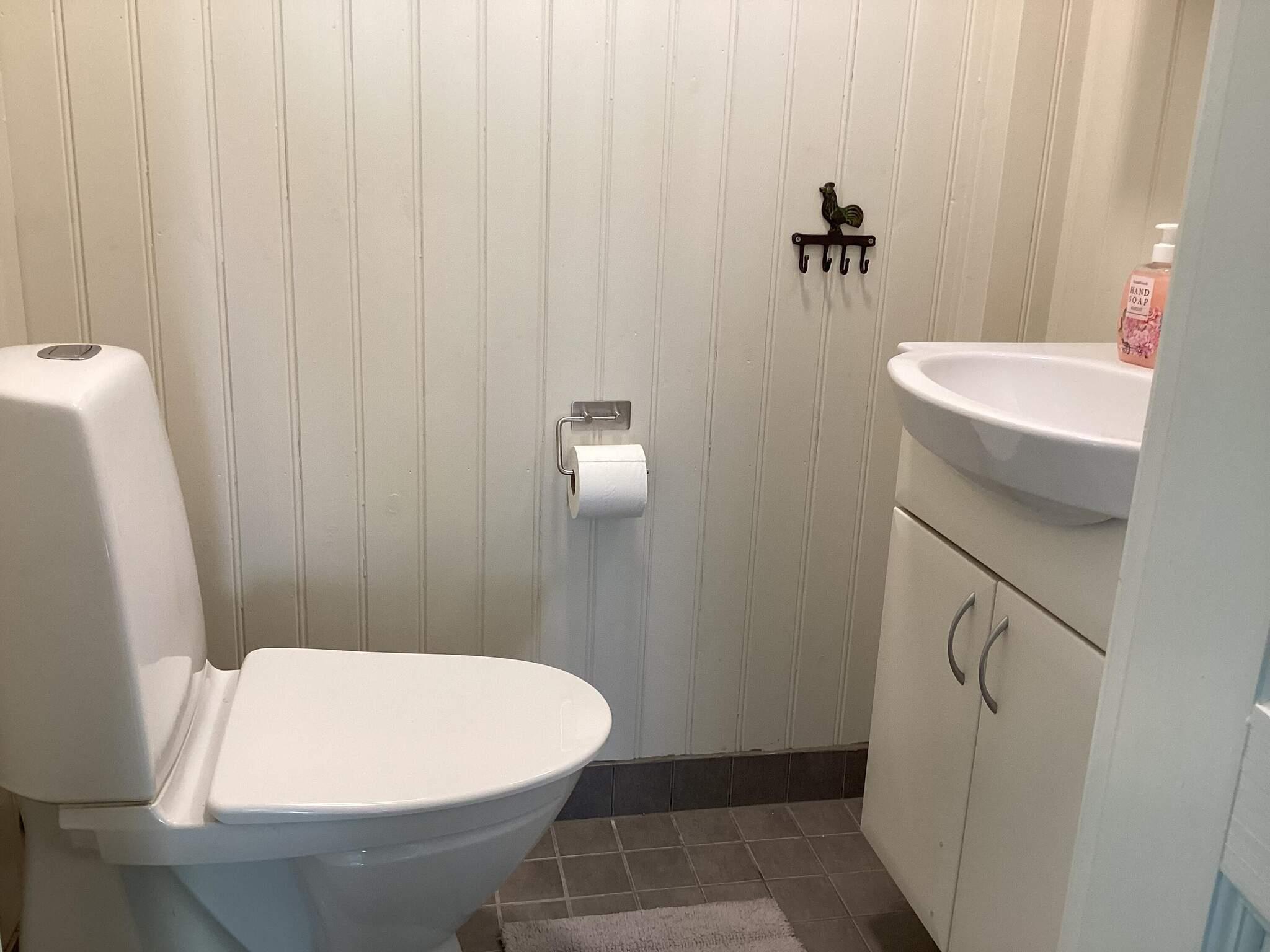 Redan i hallen möts ni av ett välkomnande intryck, med det rymliga huvudsovrummet med dubbelsäng direkt till vänster. I anslutning till hallen finns en gästtoalett med wc och tvättställ. Vardagsrummet bjuder in till lugna kvällar med skön soffa, tv och Chromecast – perfekt efter en dag vid havet.