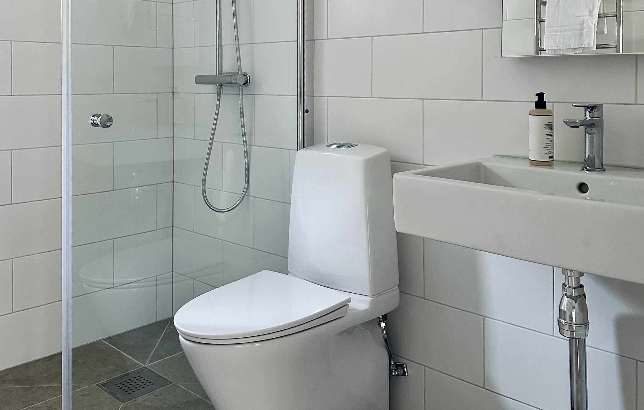 Badeværelse (nr. 1) - WC. Varmt og koldt vand. Bruser