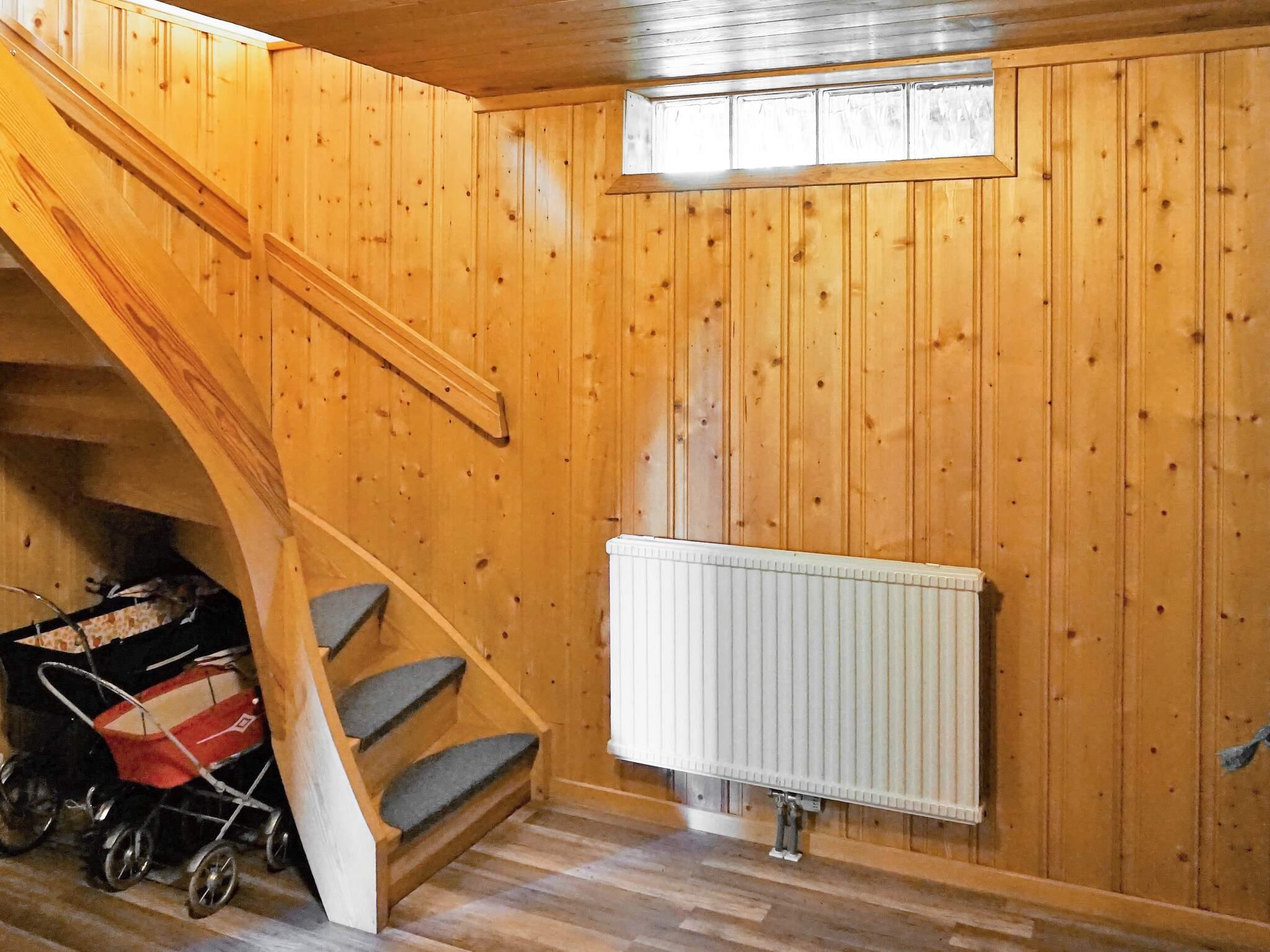 En trappa ner finns en hall för barnen som gärna leker med husets leksaker och innanför ett kombinerat sov- och allrum med soffa samt TV och Pingisbord. Här finns två enkelsängar (90+90cm). Innanför allrummet finns ett mindre sovrum med var sin enkelsäng (90+80cm). Totalt kan 8 personer bo i stugan. I stugan finns även torkskåp, stöveltork och hårfön så ni kan hålla er torra.
