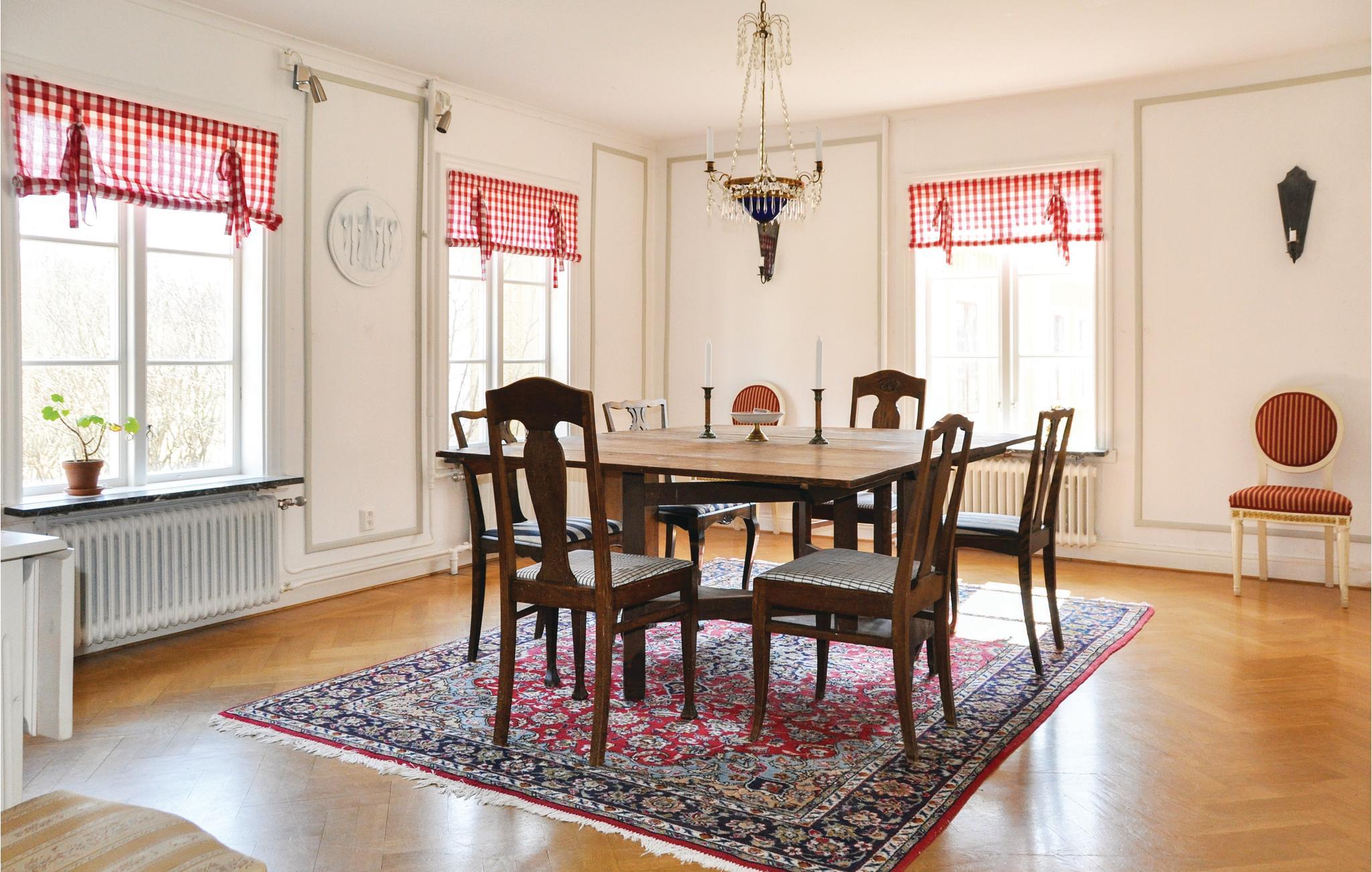 Nyd en helt særlig ferie i denne sidebygning, der ligger på Grönbo Herrgård. I den store park er der gamle egetræer og små hyggelige gangstier. Små broer leder over åen som bruser frem gennem parken der omgiver herregården. En af broerne leder til en ø, hvor der er en hyggelig siddeplads og en alle af æbletræer hvor I kan få lov at smage de sprøde æbler, i sæsonen. Herregården blev bygget i det tidlige 1700tal og i sidebygningen er der store rum og en charmerende blanding af antikke møbler og moderne detaljer. Her er et godt køkken med kvalitetsudstyr og en stor Weber gasgrill og naturligvis behagelige havemøbler der er dækket af en pavillon. Til søen, med robåd og bro, er der kun 200 m. På markerne er der græssende dyr og i åen er der bævere, som I kan se, hvis I har heldet med jer. Få km fra huset ligger Grönbo naturreservat og der er 50 km til Örebro. Der hører robåd med til lejemålet.