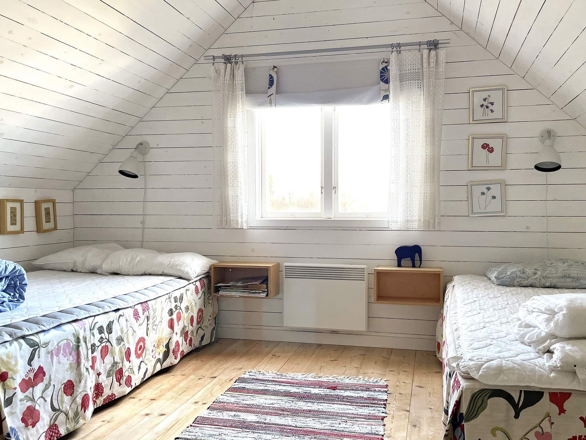 Det är två våningsplan, vardagsrum med öppen spis, ett mindre kök med matplats precis intill, två sovrum med dubbelsängar och badrum på entréplanet. På övreplan finns det två sovrum ett med dubbelsäng och ett med två enkelsängar. Ett mindre allrum med soffa och TV en bra yta för dem som vill se på TV i lugn och ro. Det är sjöutsikt från två sovrum och vardagsrum, en altandörr leder er ut på terrassen. Wifi finns.