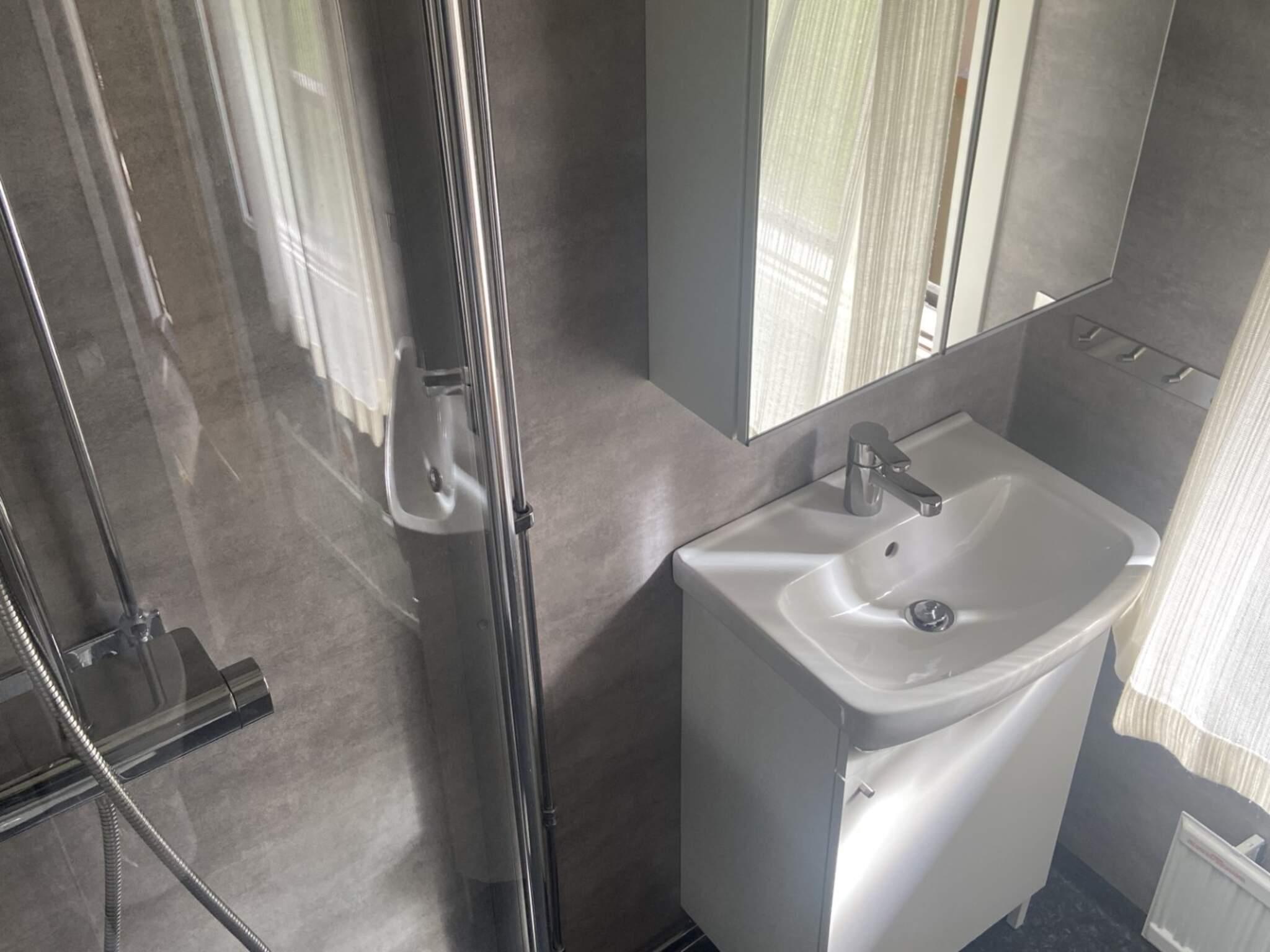 Stugan har äldre standard med rustik charm, men erbjuder ett nyrenoverat och fräscht badrum för en bekväm vistelse. Här finns två sovrum – ett med två enkelsängar och ett med en våningssäng, vilket gör boendet väl lämpat för en liten familj eller ett mindre sällskap.