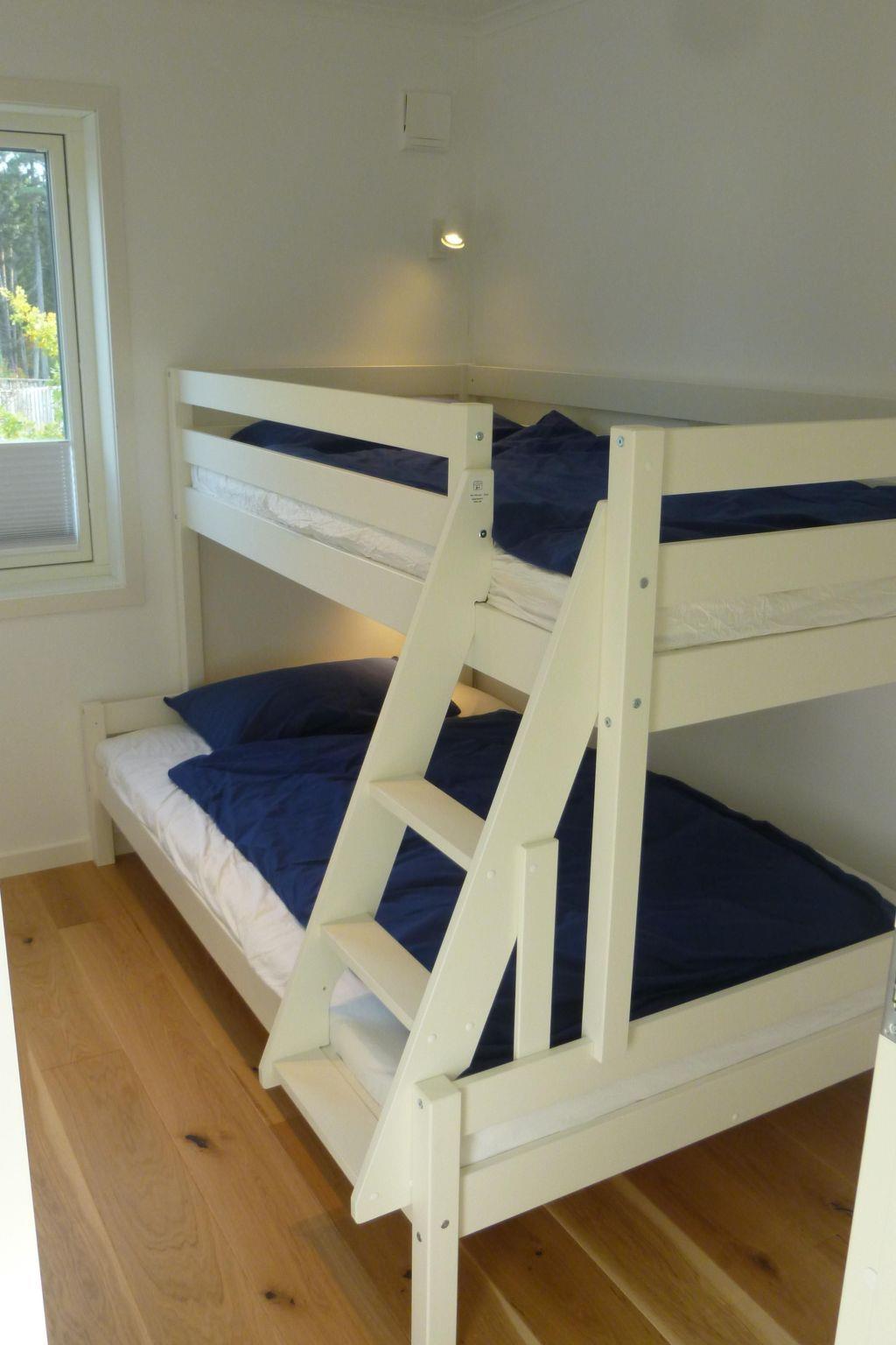 Please bring your own bed linen! Double bed 180x200cm (2 single mattresses) and bunk bed top 90x200cm bottom 140x200cm.