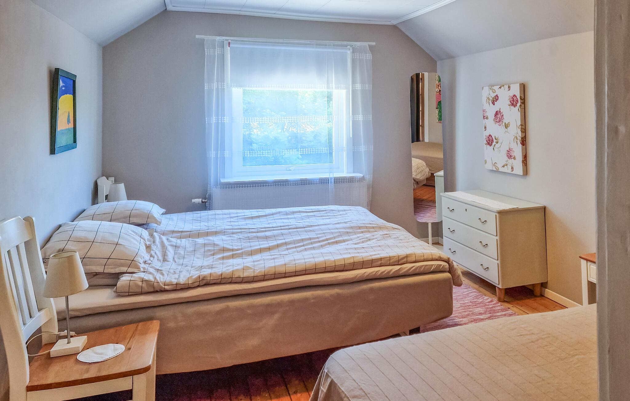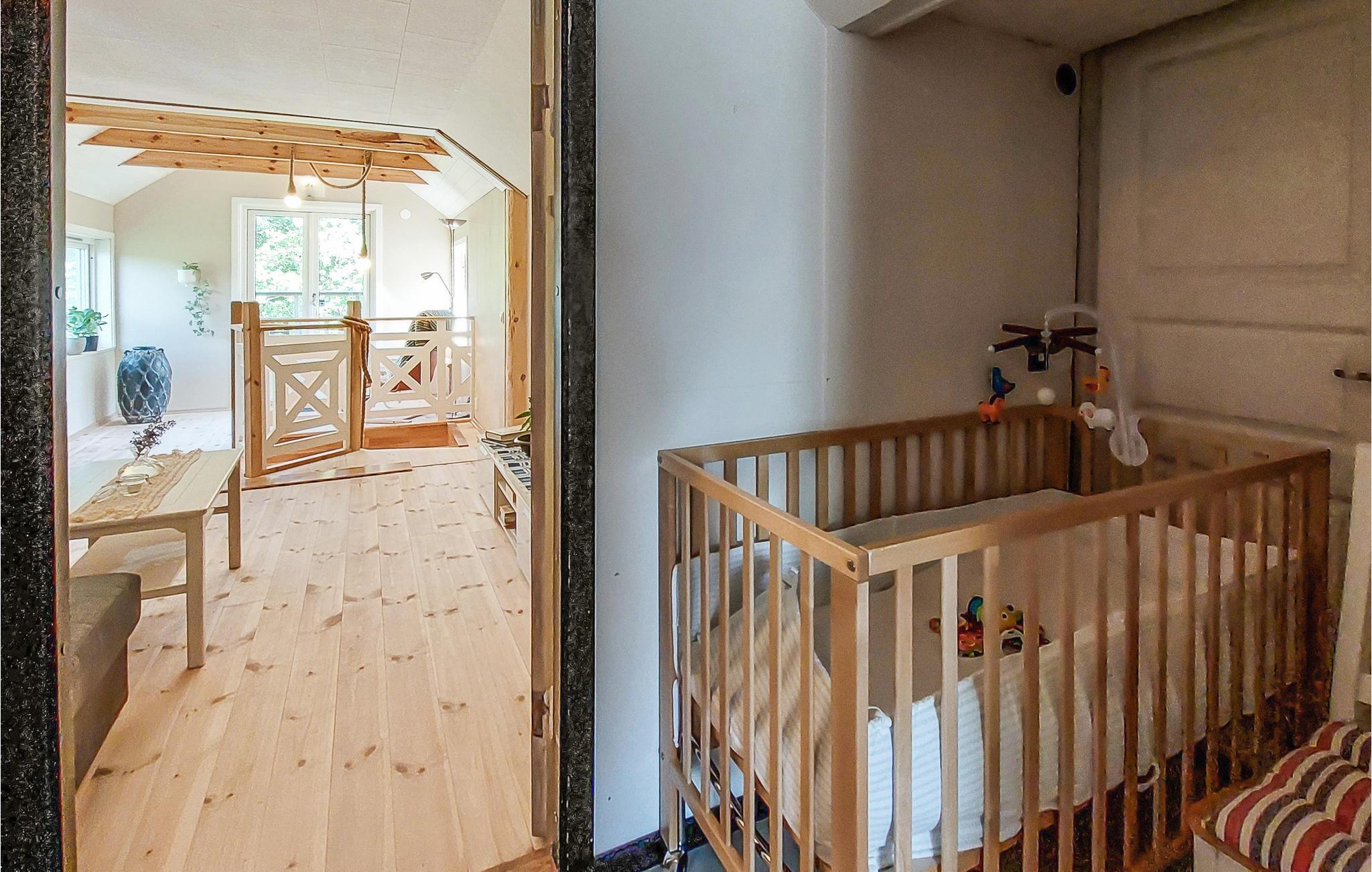 Lejligheden strækker sig over to etager i et karakterfuldt træhus. Her kan I nyde roen og stilheden. Naturen ligger lige uden for døren, og på under en times kørsel i bil når I Helsingborg med sit spændende byliv eller Ängelholm med Skäldervikens kilometerlange sandstrande.