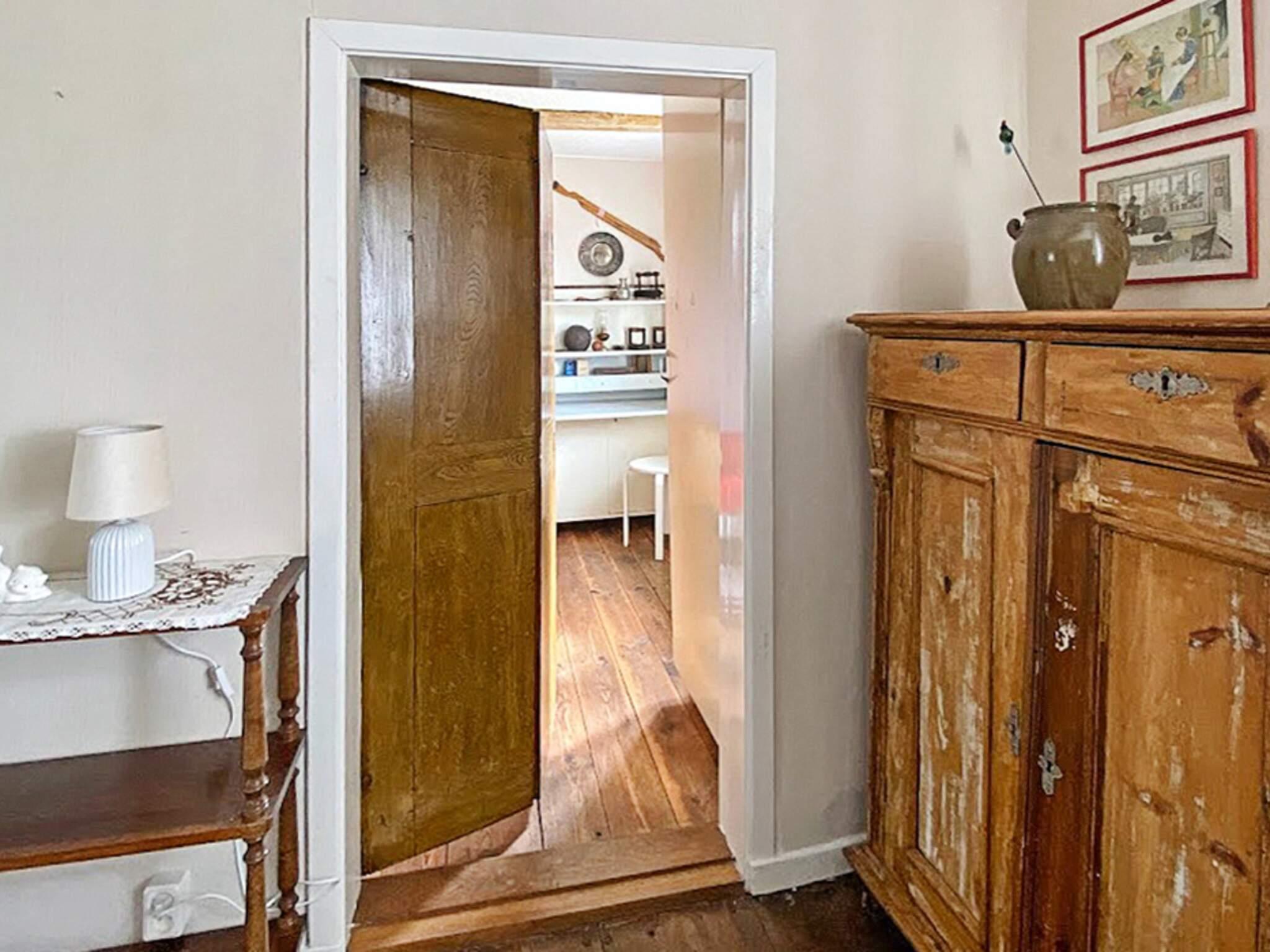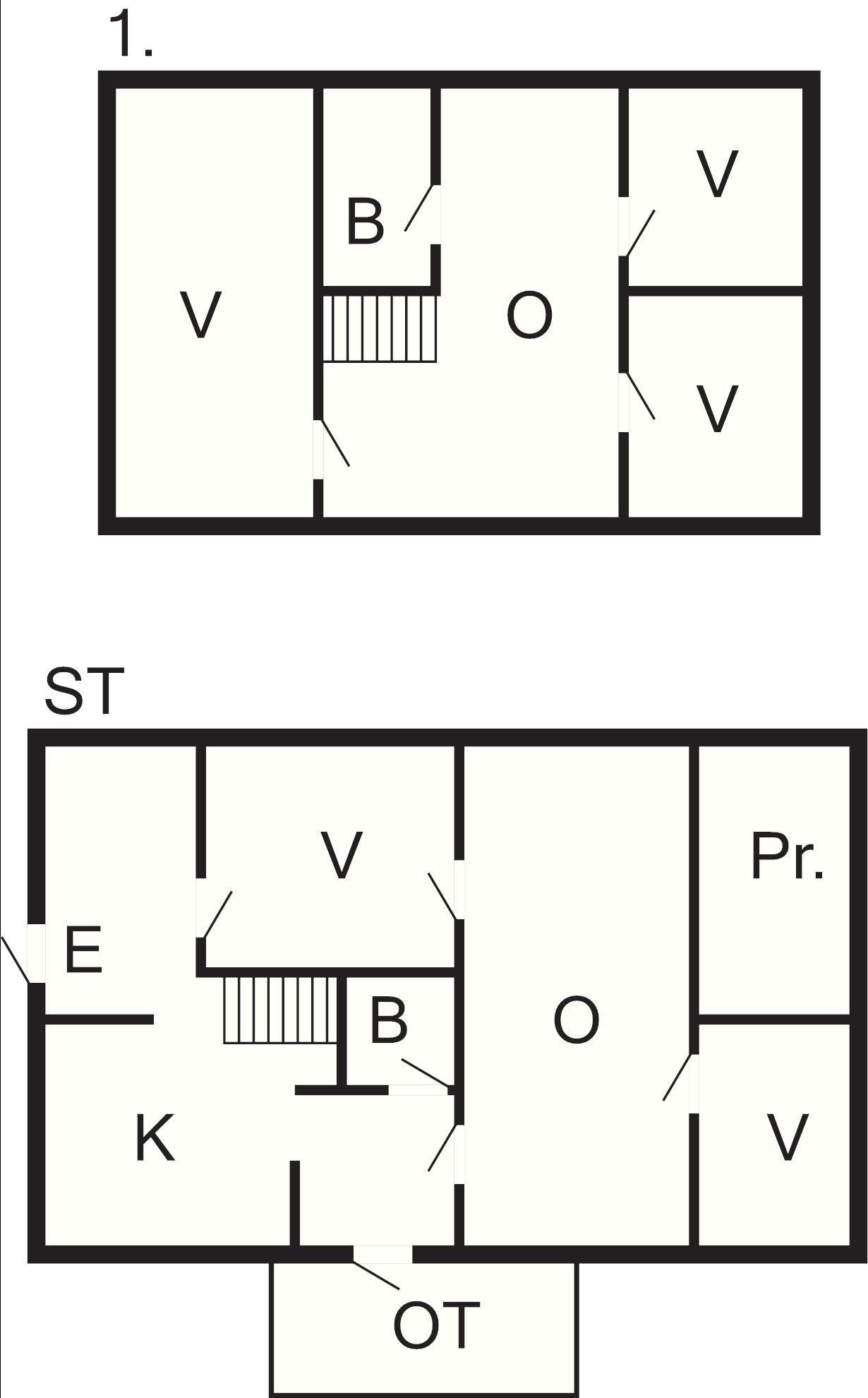 Du välkomnas in genom hallen som leder dig vidare in till köket. Huset bjuder dessutom på ett vardagsrum med ett underbart brädgolv med gott om historia. Du har även två sovrum på nedanvåningen. De övriga tre sovrummen har du på övre plan. Det finns ett badrum på nedre plan och på övre plan har du wc. Ett välplanerat hus som ger dig möjlighet att inte krypa på varandra under semestern.