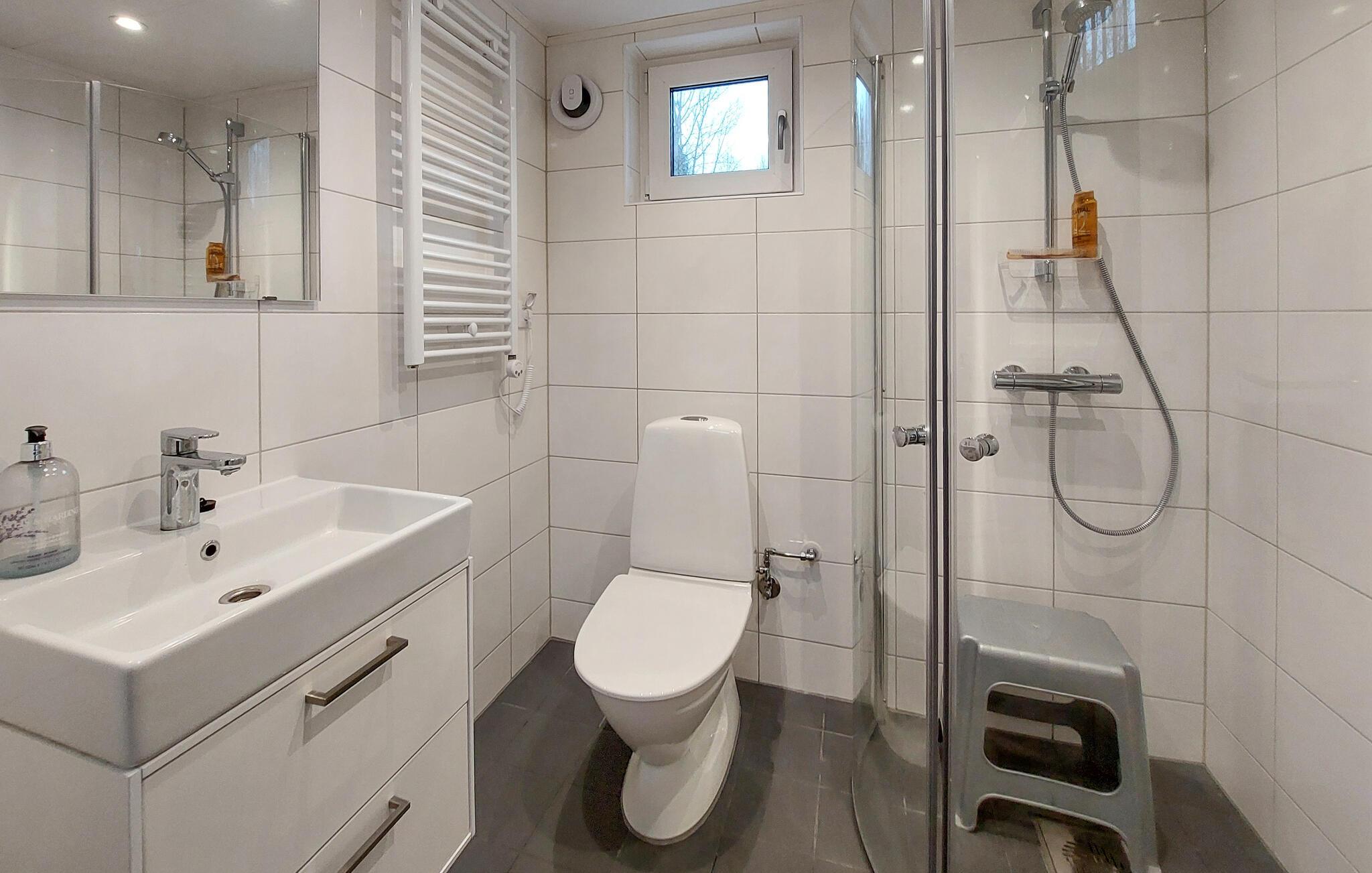 Badeværelse (nr. 1) - WC. Varmt og koldt vand. Bruser