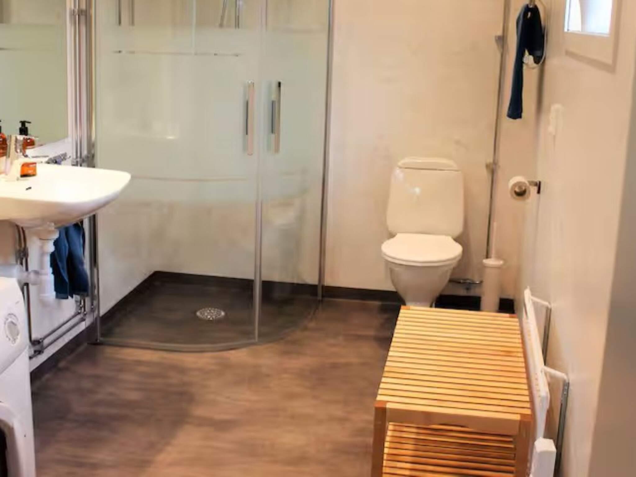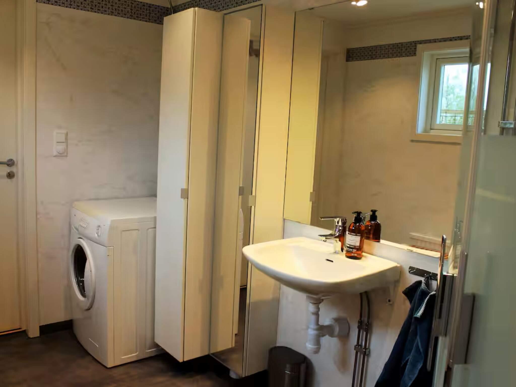 Bad/wc: Vaskemaskine, wc, håndvask, bruser